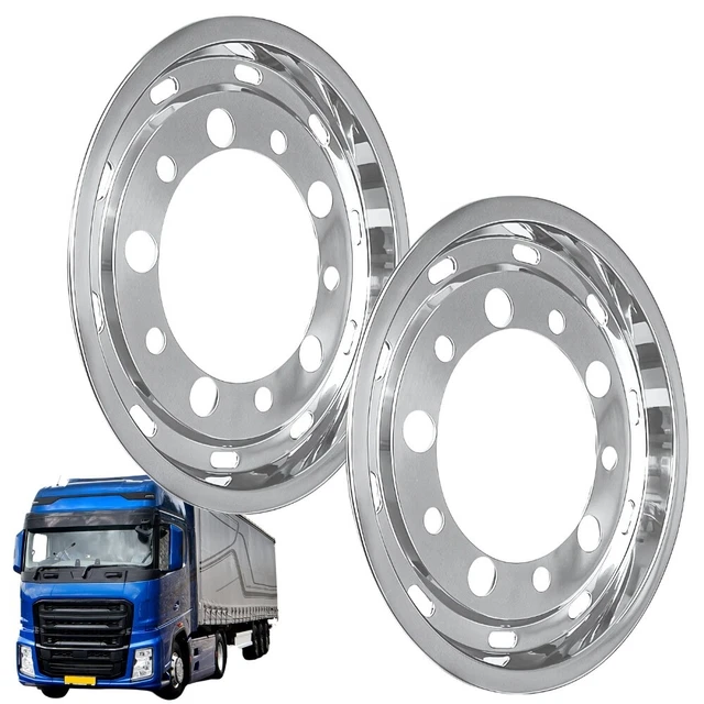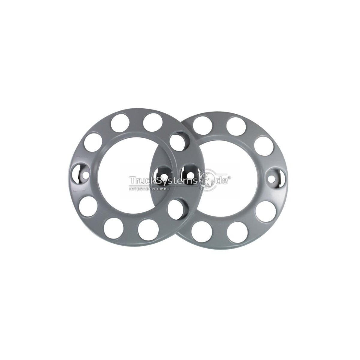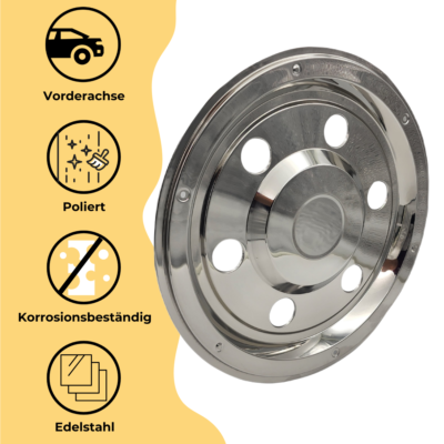 Mach deinen LKW zum Hingucker! Diese beiden Radzierblenden in 22,5 Zoll passen perfekt auf die Hinterachse und geben deinem Truck sofort mehr Style. Aus 100% rostfreiem Edelstahl, hochglanzpoliert - das blitzt und blinkt, als wär's neu! Die patentierte Halterung ist genial einfach: Ring ins Felgenhorn setzen, auseinanderschrauben, und schon sitzt es bombenfest. Dann nur noch die Blende draufschrauben - fertig! Kein Gefummel, kein Spezialwerkzeug nötig. Im Lieferumfang sind beide Blenden, die Halterringe und alle nötigen Schrauben dabei. Für die Vorderachse gibt's die gleichen Teile auch in gewölbter Ausführung. Verpass deinem LKW den letzten Schliff - das sieht nicht nur gut aus, sondern schützt auch die Felgen!