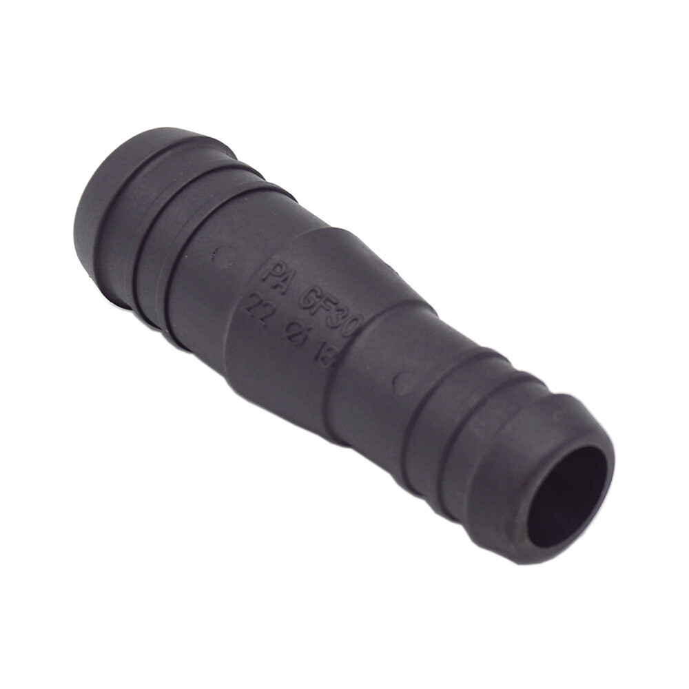 Mit den Maßen 14x16x14 mm ist er ideal zum Reduzieren zwischen verschiedenen Schlauchgrößen. Das schwarze Teil aus PA GF30 (also Polyamid mit 30% Glasfaser) ist richtig robust und hält einiges aus.
