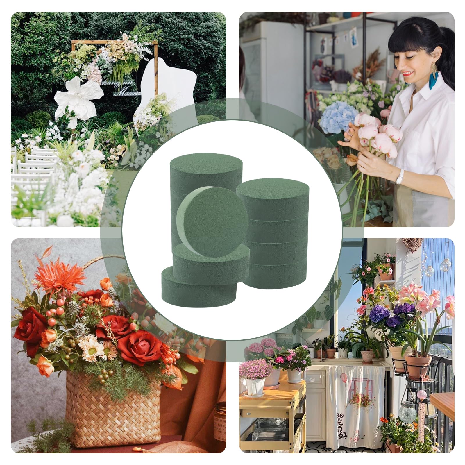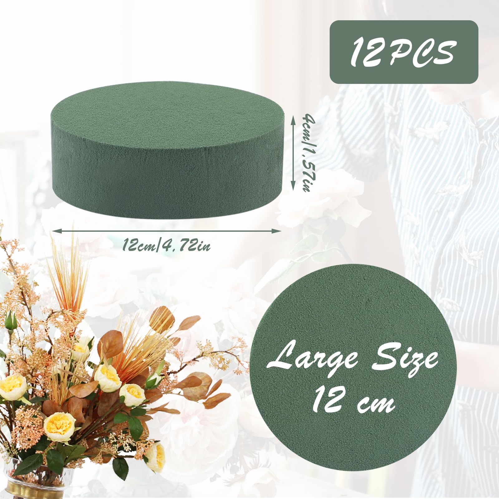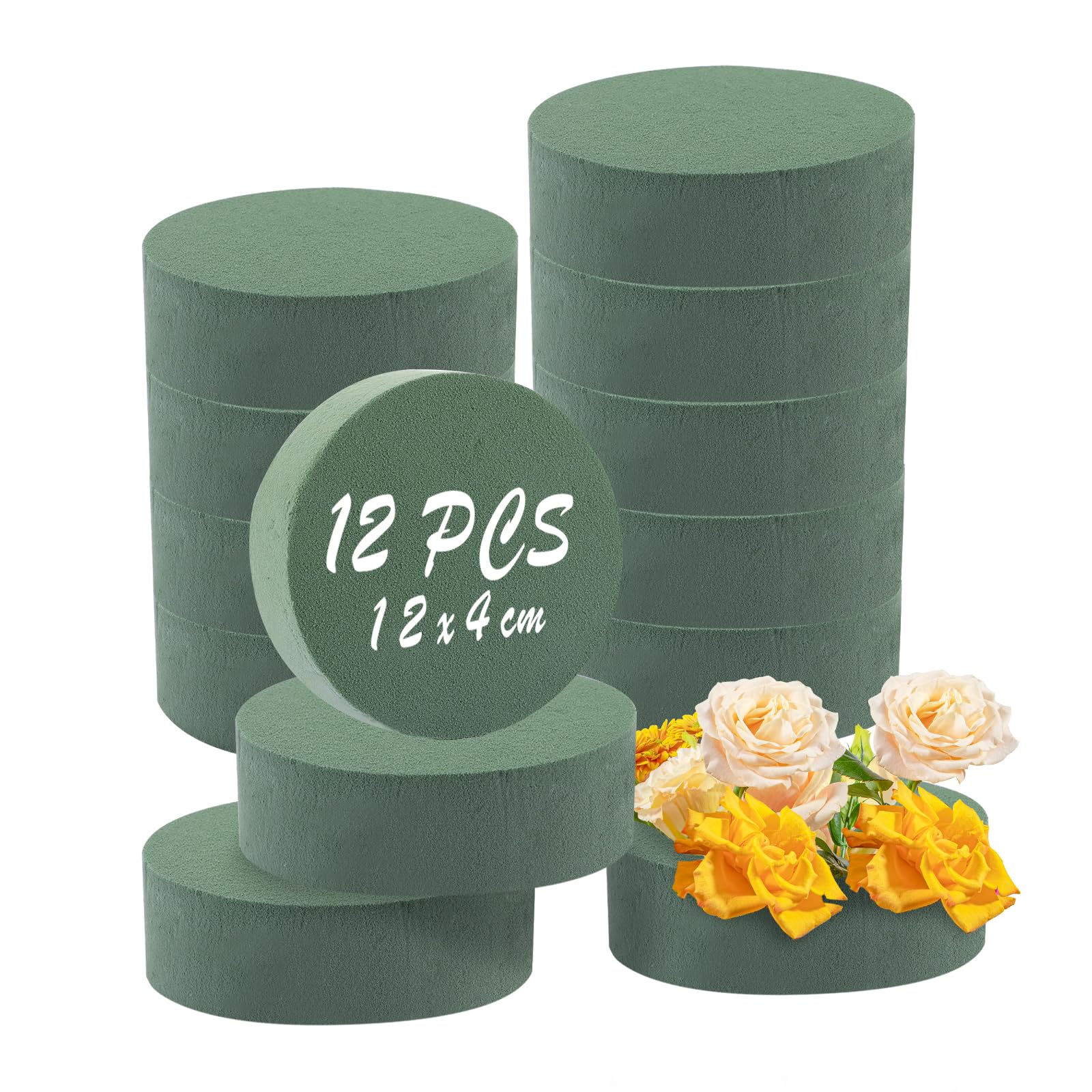 Hey du kreativer Kopf! Diese 12 Steckschaum-Zylinder sind genau das Richtige für deine Bastelprojekte. Jeder Steckschaum ist 12cm im Durchmesser und 4cm hoch - perfekte Maße für die meisten Blumenarrangements. Hergestellt aus hochwertigem Phenolharz, das langlebig, ungiftig und speziell für Trockenblumen geeignet ist. Das coole Grün tarnt sich super zwischen den Blumen und fällt kaum auf. Mit einem einfachen Messer oder einer Schere kannst du die Steckschaum-Teile ganz easy in jede gewünschte Form bringen - ob Herz, Kreis oder Buchstaben. Perfekt für Hochzeitsdekoration, Taufen, Geburtstage oder einfach nur für schöne Deko daheim. Auch Profi-Floristen schwören auf dieses Material! Die Steckmasse behält ihre Form und Qualität über lange Zeit - keine Verfärbungen, kein Verfall. Und falls doch mal was sein sollte: Der Kundenservice ist super und hilft dir innerhalb von 24 Stunden weiter. Einfach die Blumen reinstecken und sich über wunderschöne Arrangements freuen - so einfach kann Basteln sein!
