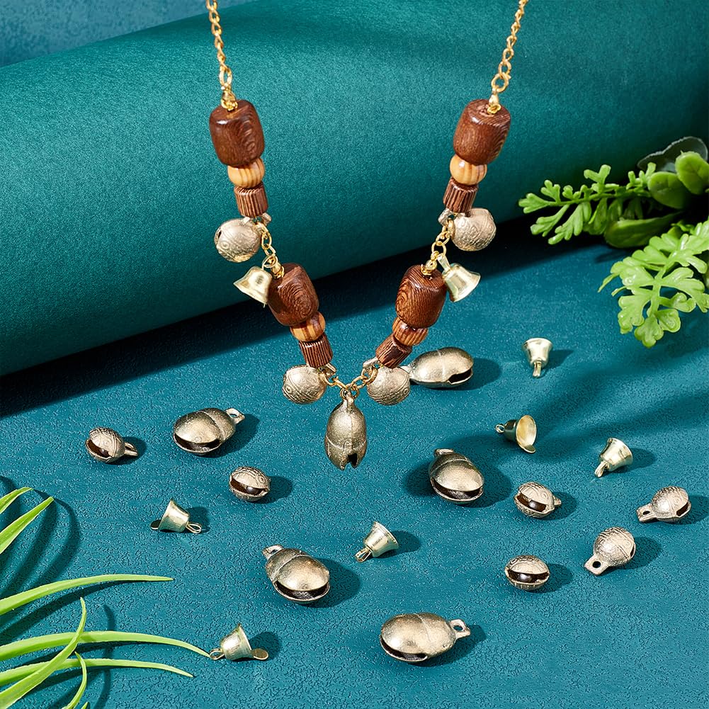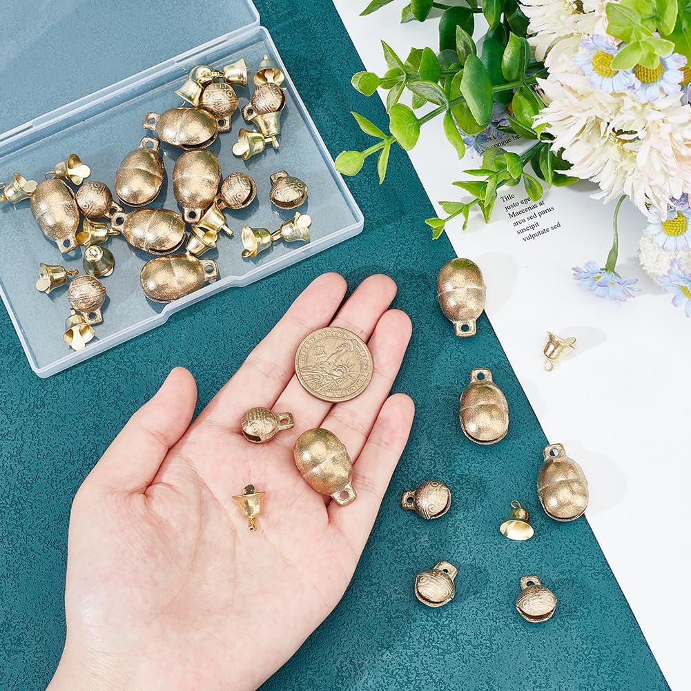 40 vintage Glocken in einem Set - damit kannst du richtig viel anfangen! Aus hochwertigem Messing, fest und stabil, nicht rostend. Drei verschiedene Typen: 10 runde Glocken (0.69x0.53x0.41mm), 10 kürbisförmige Glocken (1.06x0.53x0.51mm) und 20 Glockenanhänger (0.63x0.43mm). Jede hat ein Loch zum einfachen Aufhängen. Wenn du sie schüttelst, machen sie einen klaren, sanften Ton - total beruhigend! Super für Heimdekoration, Auto-Deko, Bastelprojekte, Schmuck, Haustierhalsbänder, Windspiele, Weihnachtsschmuck, DIY-Armbänder, Halsketten, Schlüsselanhänger... deiner Fantasie sind keine Grenzen gesetzt! Auch ein tolles Geschenk - symbolisiert Glück und Frieden. Perfekt für Geburtstage, Weihnachten oder andere besondere Anlässe. Mit praktischer Aufbewahrungsbox (4.92x3.35x0.71mm). Mach was Schönes draus!
