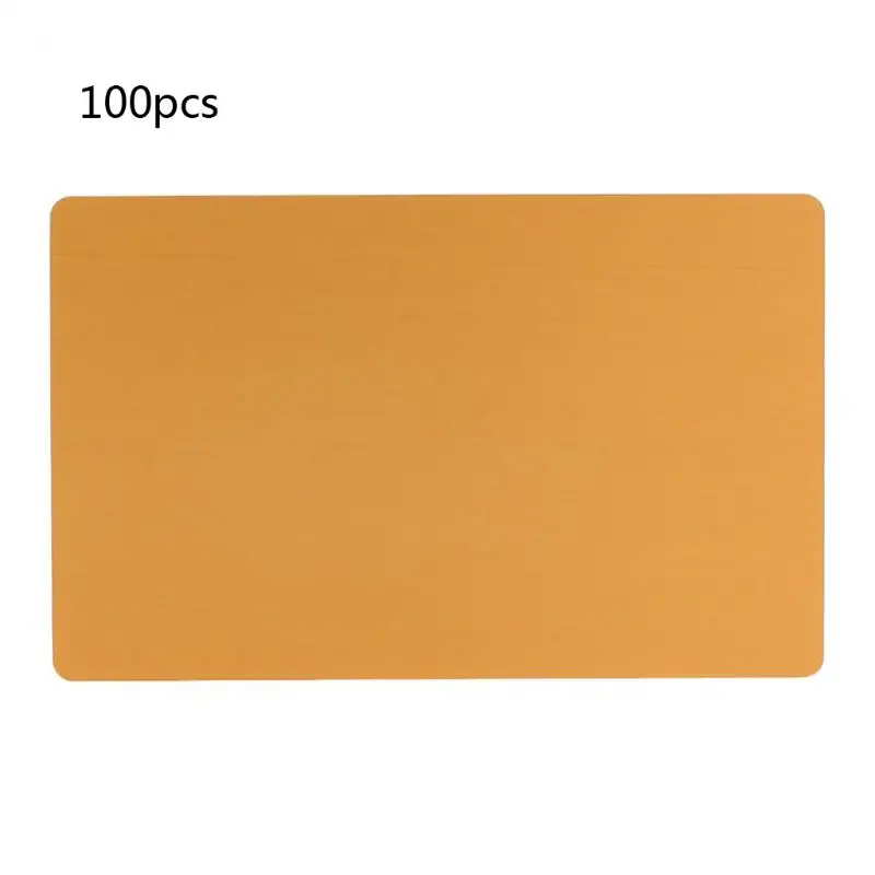 Mach deine Visitenkarten zum echten Hingucker! Diese 50 hochwertigen Visitenkarten-Rohlinge aus Aluminium sind perfekt für individuelle Gravuren. Mit den Maßen 86x54x0,22mm haben sie die klassische Visitenkartengröße und wirken richtig edel. Das Material ist rostfrei, reißfest und super langlebig. Erhältlich in verschiedenen Farben - so findest du garantiert den passenden Look für dein Business. Einfach mit deinem Logo oder Text gravieren lassen und schon hast du einzigartige Visitenkarten, die bei Kunden richtig Eindruck schlagen. Perfekt auch als kleine Gedenkkarten, die ewig halten. Kompakt und leicht - passt in jede Brieftasche!