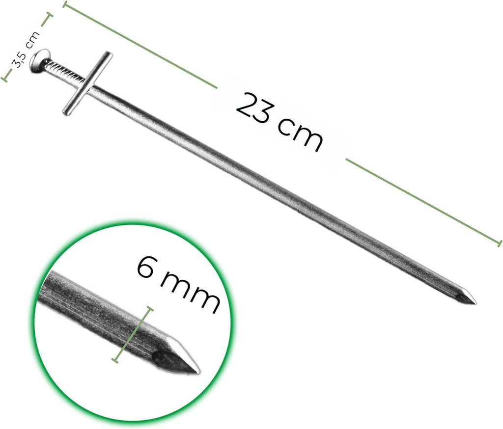 Hallo Camper und Gartenfreunde! ⛺ Diese 6 Zeltheringe sind echte Kraftpakete für dein nächstes Abenteuer. Mit 30cm Länge und 5,7cm Breite halten sie bombenfest - egal ob im harten Boden, Sand oder Kies. Aus hochfestem Stahl gefertigt, verformen sie sich nicht und rosten auch bei langer Outdoor-Nutzung nicht. Das J-förmige Design ist super praktisch: Seile und Schnüre lassen sich leicht befestigen und rutschen nicht weg. Das Gewinde an den Spitzen erleichtert das Eindrehen in den Boden - selbst mit bloßen Händen kein Problem! 💪 Perfekt nicht nur für Zelte, sondern auch für Trampoline, Markisen, Pavillons oder Gartenplanen. Dein Zelt bleibt auch bei starkem Wind sicher stehen und das Trampolin kippt nicht um. Ob beim Camping, Festival oder im heimischen Garten - mit diesen Heringen bist du auf der sicheren Seite. Das 6er-Set reicht für die meisten Anwendungen aus. Also pack sie ein und genieße sorgenfreie Tage im Freien! 🌳🏕️ Kleiner Tipp: Bei sehr hartem Boden vorher ein kleines Loch mit einem spitzen Stock vorstechen - dann geht's noch leichter!