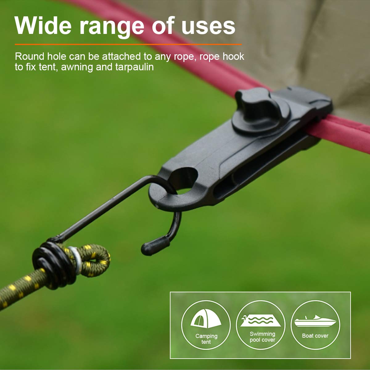 Für alle Outdoor-Fans: Diese 20 Tarp-Clips sind der absolute Game-Changer beim Camping! Einfach drücken zum Öffnen und Schließen - keine komplizierten Handgriffe nötig. Super praktisch für Zeltteppiche, Bodenplanen oder Abdeckplanen. Aus hochfestem Kunststoff - richtig robust und langlebig, brechen nicht so leicht. Die rutschfeste Oberfläche sorgt für bombenfeste Klemmkraft. Mit rundem Loch am Ende - kannst du Seile oder Haken durchfädeln für extra Stabilität. Perfekt bei Wind, damit nichts verrutscht! Nicht nur für Zelte: Auch für LKW-Planen, Markisen, Sonnenschirme oder Wäscheleinen super geeignet. Ein Clip, tausend Möglichkeiten! Das 20er-Set reicht für alle möglichen Projekte - ob Camping, Transport oder Gartenarbeit. Macht das Aufbauen so viel schneller und einfacher. Einfach unverzichtbar in jeder Outdoor-Ausrüstung!