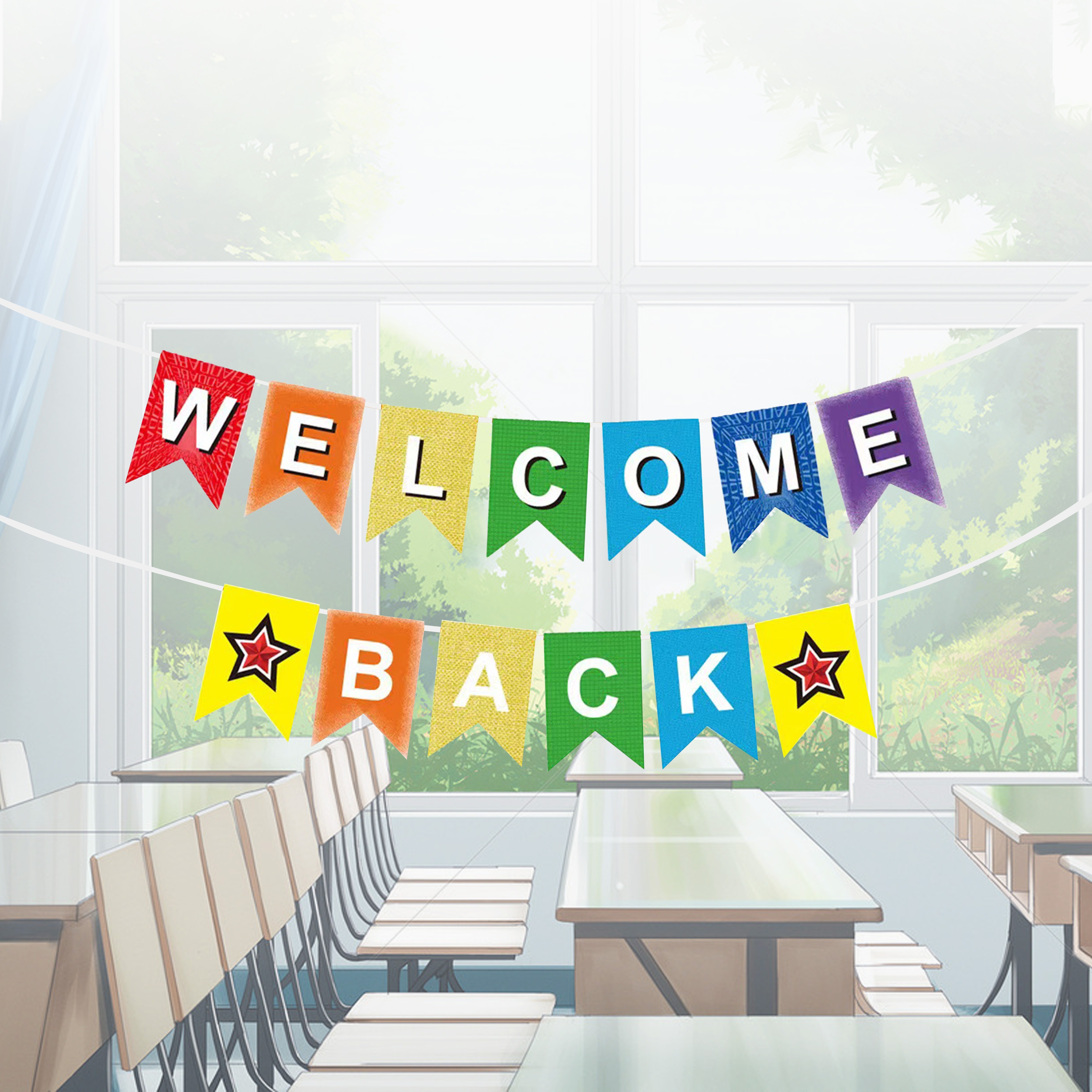 • STOBOK Willkommensbanner 2-tlg. - Zurück Zur Schule Dekoration Für Klassenzimmer | Bunte Wimpelkette