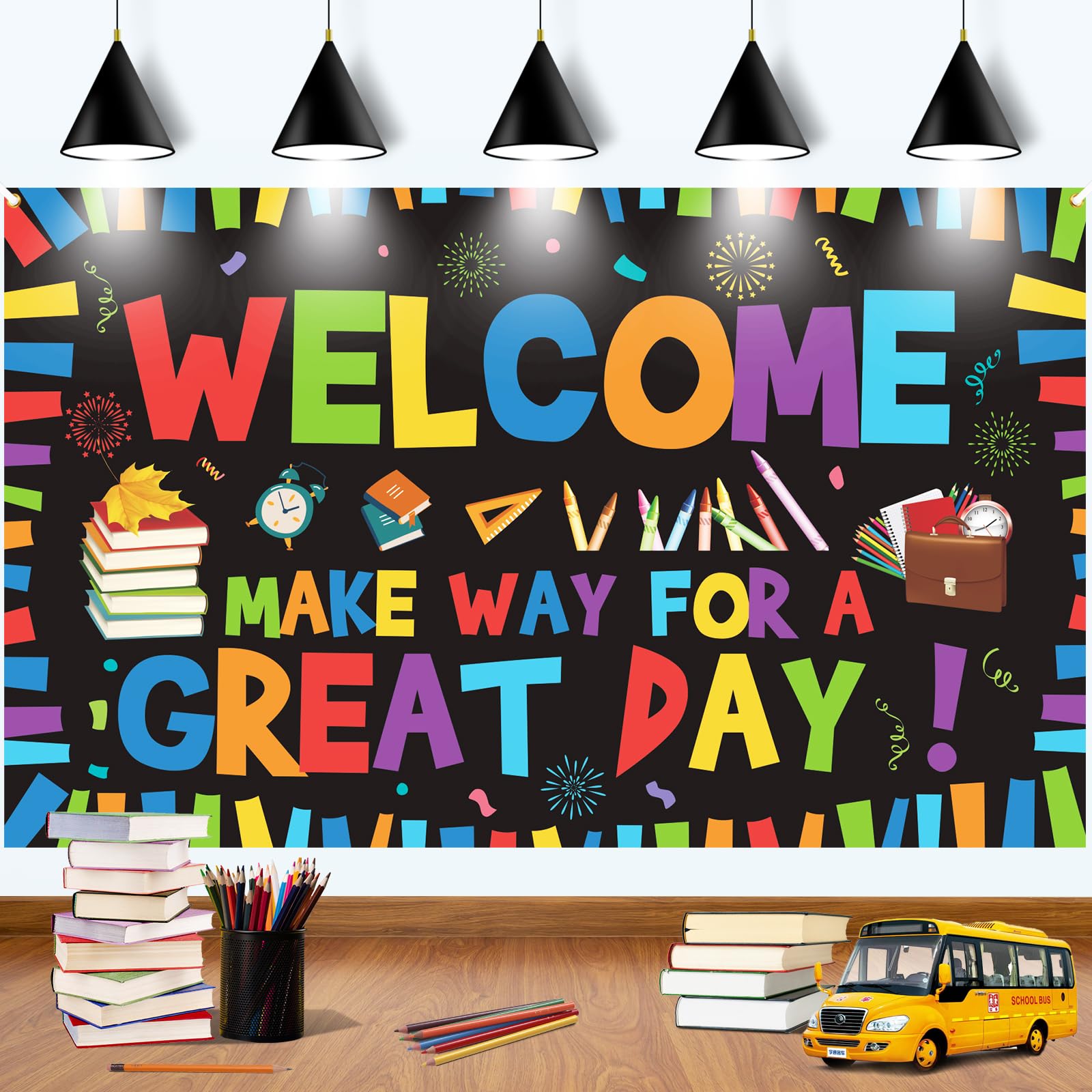 Heiße deine Schüler willkommen mit diesen fröhlichen Banner! Das 2-teilige Set mit 'Willkommen zurück' und 'Zurück zur Schule' sorgt für eine einladende Atmosphäre im Klassenzimmer. Die bunten Farben wecken Vorfreude auf das neue Schuljahr. Mit 3 Meter Länge pro Banner ein echter Blickfang. Aus hochwertigem Papier gefertigt - stabil und langlebig. Einfach aufzuhängen an Wänden, Tafeln, Fenstern oder Türen. Perfekt für die Einschulung, den ersten Schultag oder Klassenraum-Gestaltung. Die kindgerechten Designs begeistern Groß und Klein. Einfach zu transportieren und platzsparend zu verstauen. Mach dein Klassenzimmer zum gemütlichen Lernort mit dieser charmanten Dekoration. Auch ideal für Schulfeste oder Projekttage. Ein Must-Have für jeden Lehrer!