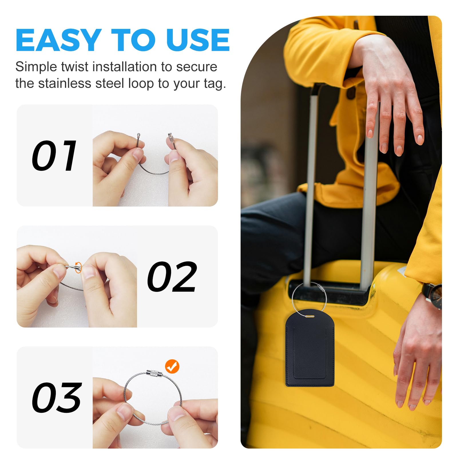 Nie wieder verwechseltes Gepäck! Diese 4 edlen Gepäckanhänger aus PU-Leder machen deine Koffer unverwechselbar. Mit gestickten Initialen erkennst du dein Gepäck sofort auf dem Fließband. Die transparente Abdeckung schützt deine Kontaktdaten vor neugierigen Blicken. Robuste Edelstahl-Ösen halten sicher am Griff. Perfekt für Familien, Paare oder Vielreisende. Ob Koffer, Rucksack oder Sporttasche - mit diesen Anhängern bist du immer auf der sicheren Seite. Sieht nicht nur gut aus, sondern ist auch super praktisch. Mach dein Gepäck persönlich und stylisch - Reisen war noch nie so organisiert!