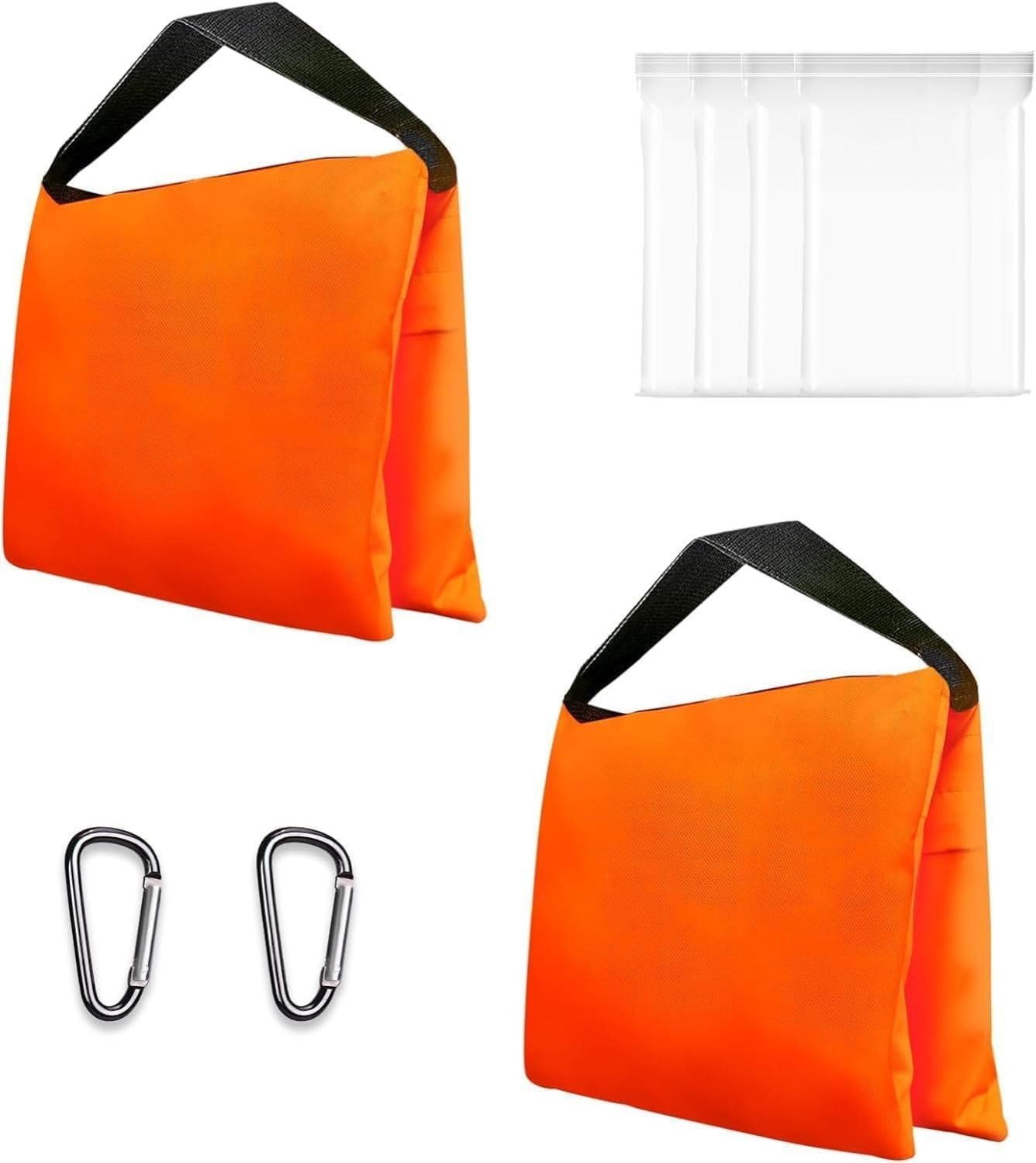 Stabilität für deine Ausrüstung! Diese robusten Sandsäcke geben Stativen, Lichtständern und Zelten den nötigen Halt.\n\nHochwertige Verarbeitung: Aus strapazierfähigem 800D Oxford-Material mit doppelten Nähten für lange Haltbarkeit.\n\nPraktische Features: Klettverschluss an beiden Seiten für einfaches Befüllen, Metallklammern für sicheren Halt an Ständern.\n\nGroßes Fassungsvermögen: 57x26cm Größe, bis zu 12kg Belastbarkeit pro Sack. Wird leer geliefert - einfach mit Sand oder Kies befüllen.\n\nVielseitig einsetzbar: Für Foto-Stative, Lichtequipment, Pavillons, Sonnenschirme, Angelstühle und vieles mehr.\n\nIm Lieferumfang: 4 Sandsäcke, 4 Metallklammern, 8 PE-Beutel für saubere Aufbewahrung des Füllmaterials.\n\nTipp: Auch mit Wasserflaschen befüllbar für zusätzliches Gewicht. Ideal für Outdoor-Shootings bei Wind!\n\nFür wen? Fotografen, Filmemacher, Event-Techniker - jeder der stabile Aufbauten braucht.