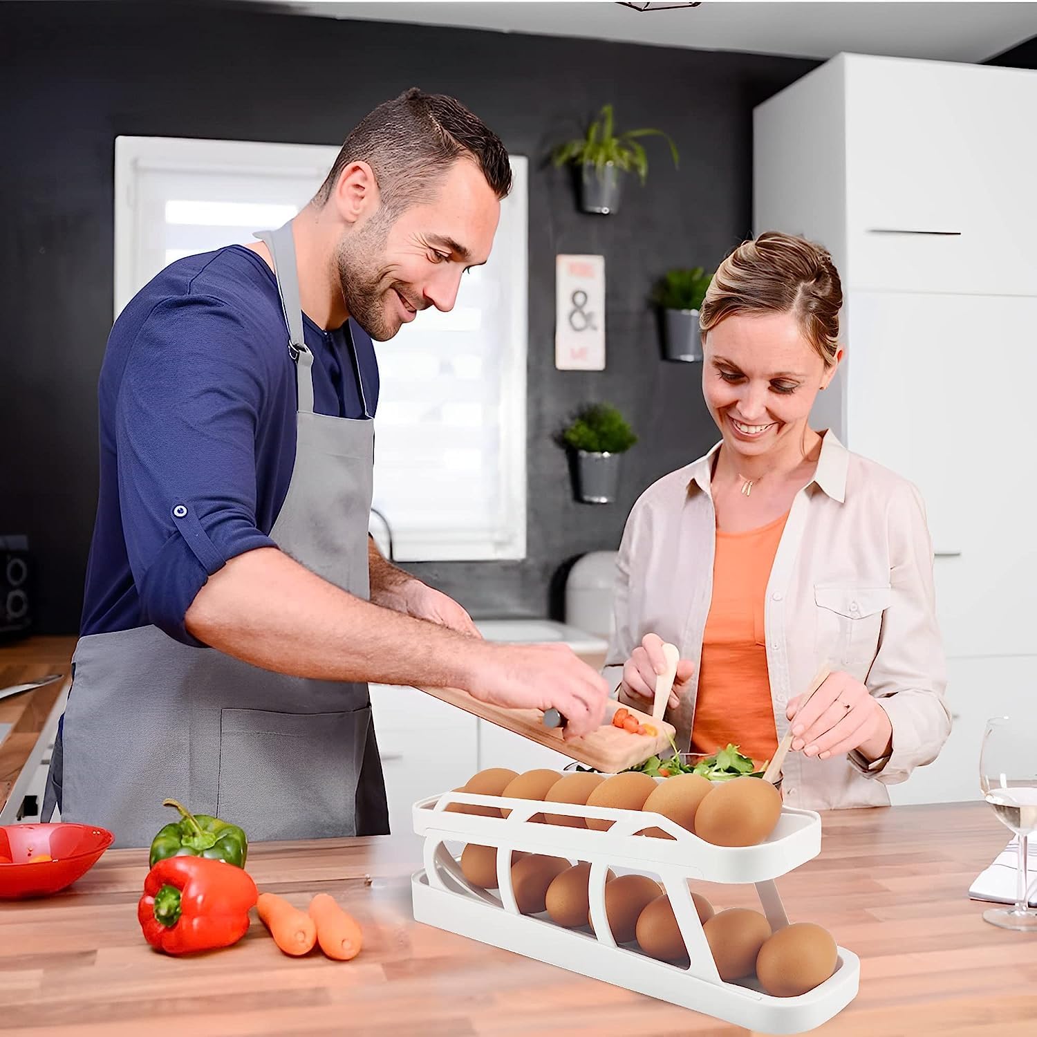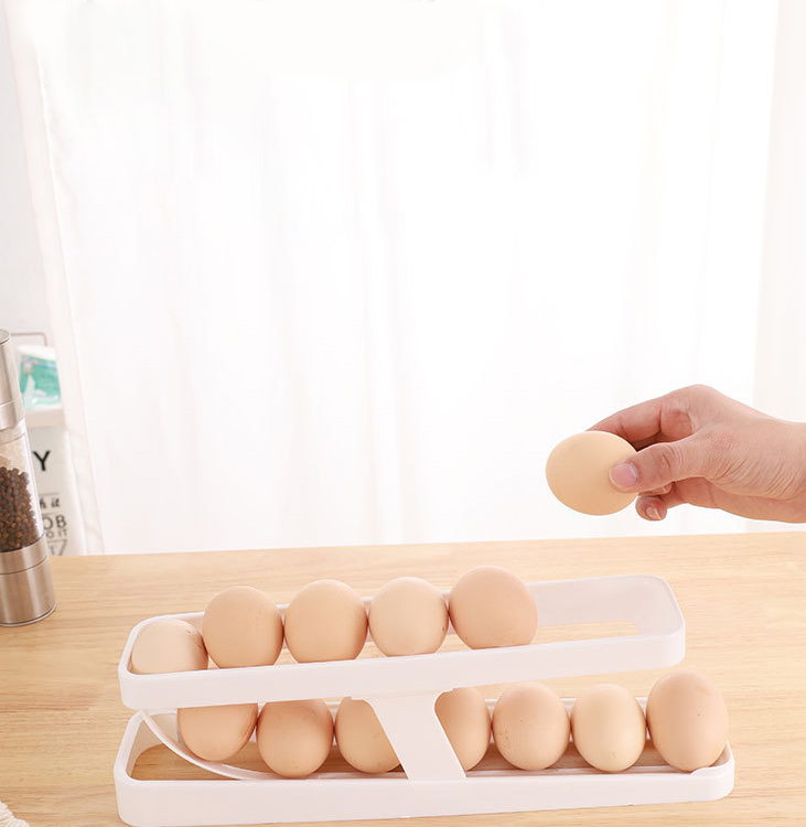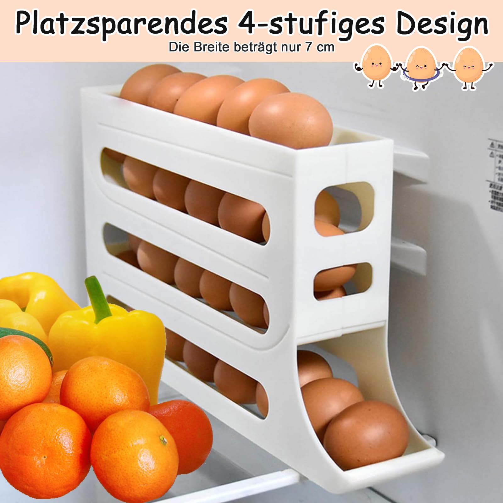 Schluss mit wackeligen Eierkartons im Kühlschrank! Dieser geniale 3-stöckige Eierspender bringt Ordnung in deine Küche. Mit den Maßen 28x15x8.5cm passt er perfekt in jeden Kühlschrank und bietet Platz für 16-17 mittelgroße Eier. Das coole Rollsystem sorgt dafür, dass die Eier automatisch nach vorne rutschen - du nimmst einfach immer das vorderste Ei und die nächsten rücken nach. So hast du immer den Überblick und musst nicht lange suchen. Der transparente Klappdeckel schützt vor Staub und verhindert, dass Eier herausfallen. Aus stabilem PP-Kunststoff gefertigt ist der Spender geruchlos, leicht zu reinigen und mehrfach stapelbar. Super praktisch für Familien, WGs oder alle, die regelmäßig Eier essen. Endlich keine zerbrochenen Eier mehr und alles schön ordentlich - so macht Kochen noch mehr Spaß!