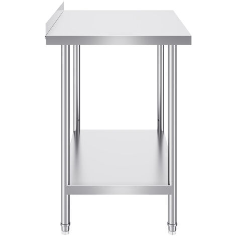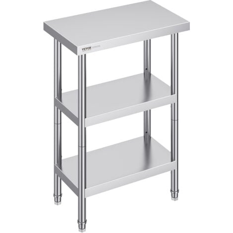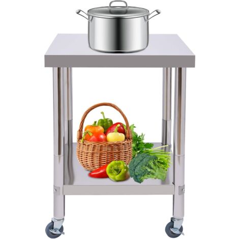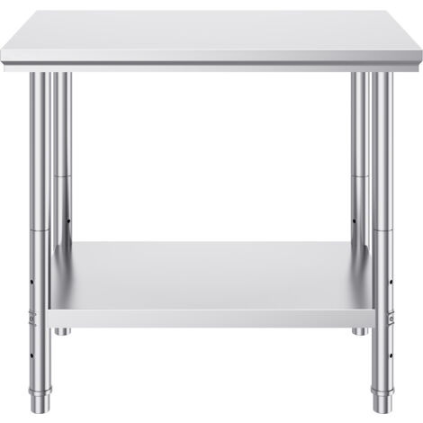 Der Allrounder für jede Küche! Dieser robuste Edelstahl-Arbeitstisch mit 2 Ebenen ist ein echter Arbeitsplatz-Wunder. Perfekt für Restaurants, Hotels oder die heimische Küche - hier findet alles Platz, was du zum Kochen und Vorbereiten brauchst. Die verstellbaren Füße sorgen für einen stabilen Stand, auch auf unebenen Böden. Die dreieckige Verstärkung macht den Tisch extrem stabil und verformungsresistent. Die glatte Edelstahl-Oberfläche ist nicht nur hygienisch und rostfrei, sondern auch super leicht zu reinigen. Einfach abwischen und der Tisch glänzt wie neu! Ob zum Gemüse schneiden, Teig kneten oder als Ablage für Küchengeräte - dieser Tisch erleichtert dir die Arbeit ungemein. Die untere Ablage bietet zusätzlichen Stauraum für Töpfe, Schüsseln oder Vorräte. Ein echter Küchenhelfer, der jahrelang treue Dienste leistet. Einfach aufbauen und sofort loslegen!