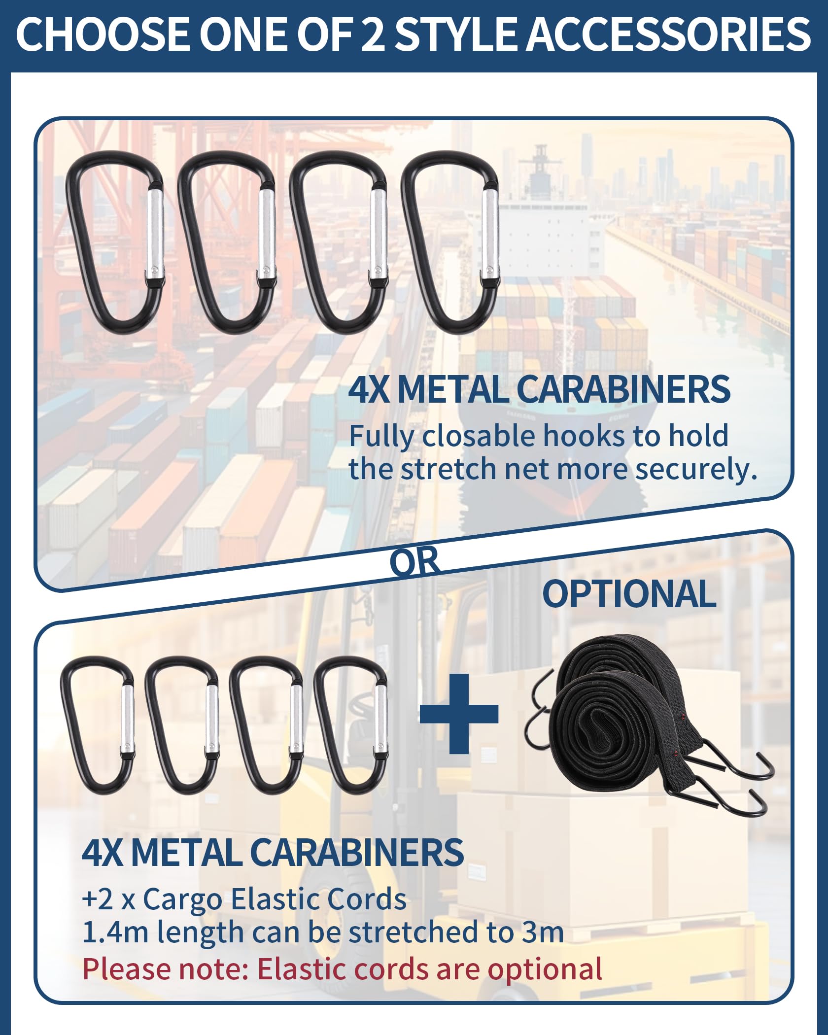 Endlich Ordnung im Kofferraum! Dieses elastische Gepäcknetz hält deine Sachen sicher fest - ob beim Camping, Großeinkauf oder Umzug. Dehnt sich von 120x120cm auf 210x210cm, passt also in fast jedes Auto, Wohnmobil oder Transporter. Mit 8 Metallkarabinern zum sicheren Befestigen. Feinmaschiges Design hält sogar kleine Teile zurück. Einfache Montage ohne Werkzeug - einfach ausbreiten und einklicken. Aus reißfestem Nylon, hält was aus. Perfekt für Familien, Handwerker oder Reisende - ein muss für jedes Auto!