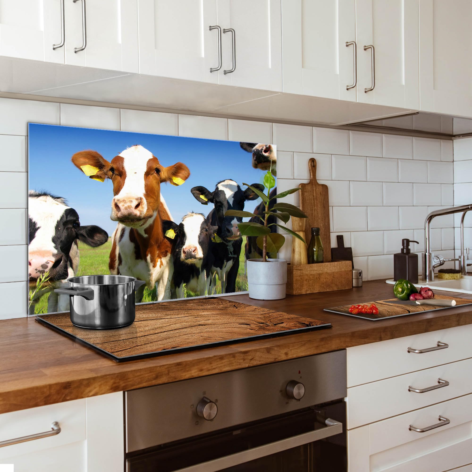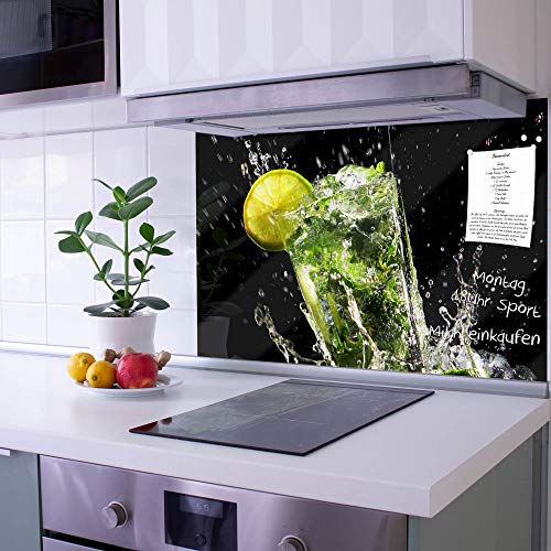 • Küchenrückwand Glas 75x50cm - Selbstklebend Ohne Bohren | Motiv Sonne & Magnetisch Beschreibbar