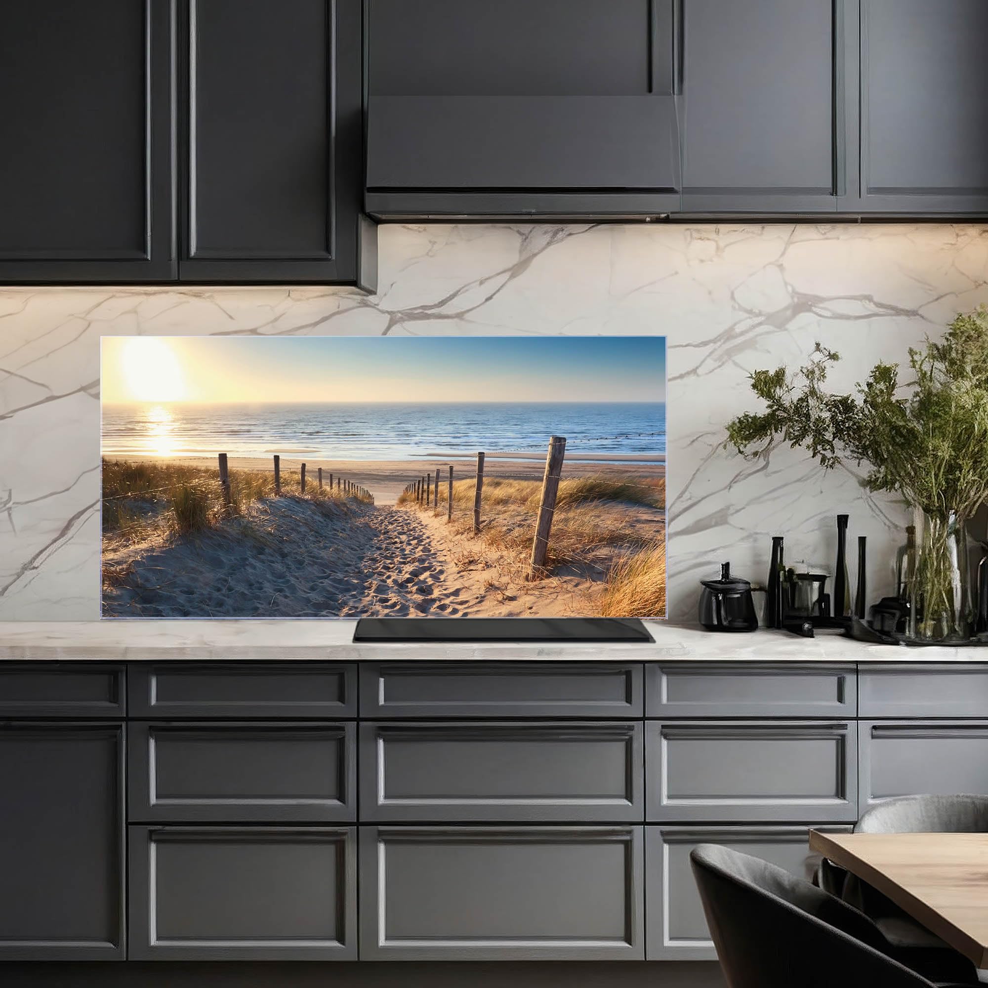 Küchenrückwand Glas 75x50cm - Selbstklebend Ohne Bohren | Motiv Sonne & Magnetisch Beschreibbar