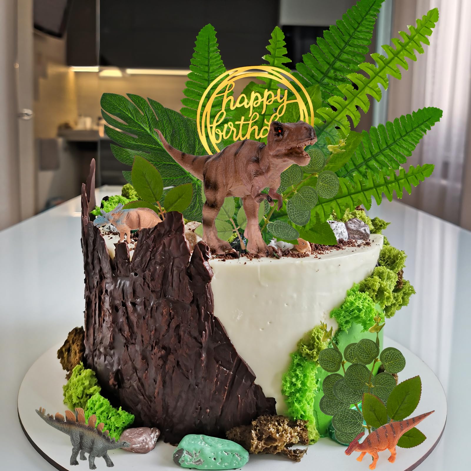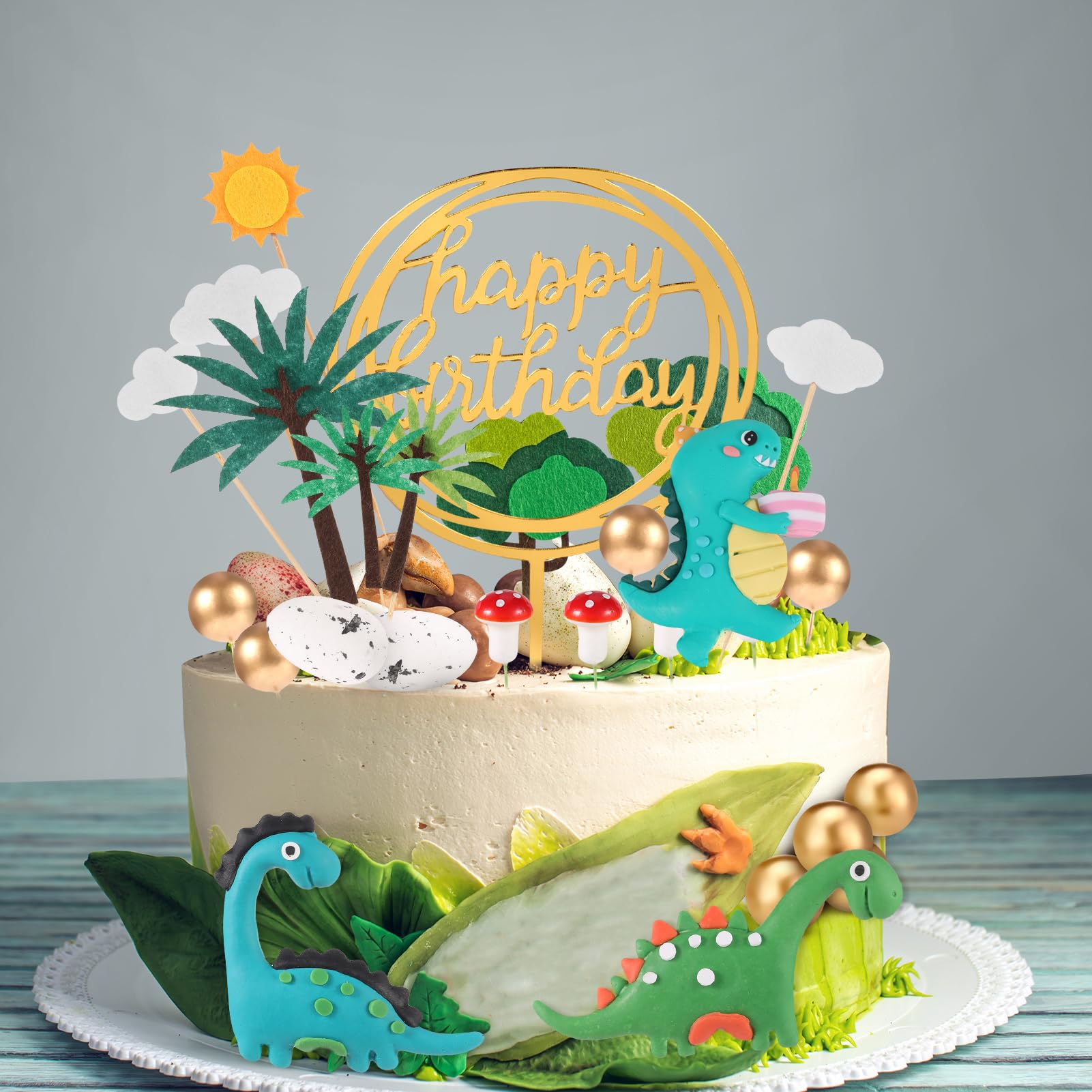 Wow, was für eine coole Deko für jede Dino-Party! Das Set hat 20 Teile: 3 verschiedene Dinosaurier, 6 grüne Blätter, 1 Dino-Ei, 2 Obstbäume, 4 Gräser, 3 'Happy Birthday'-Banner und 1 Vulkan. Alles aus hochwertigem, ungiftigem Kunststoff. Die Dinos sind richtig dreidimensional und sehen total lebendig aus! Einfach auf die Torte stecken und schon ist sie der Hit auf der Party. Nach der Feier abwaschen und als Spielzeug oder Deko weiterverwenden. Die Farben sind kräftig und die Details super süß gemacht. Egal ob für Jungs oder Mädchen - Dinos gehen immer! Perfekt für Geburtstage, Kindergartenfeste oder einfach mal so. Damit wird jede Torte zum echten Highlight und die Kinderaugen werden strahlen!