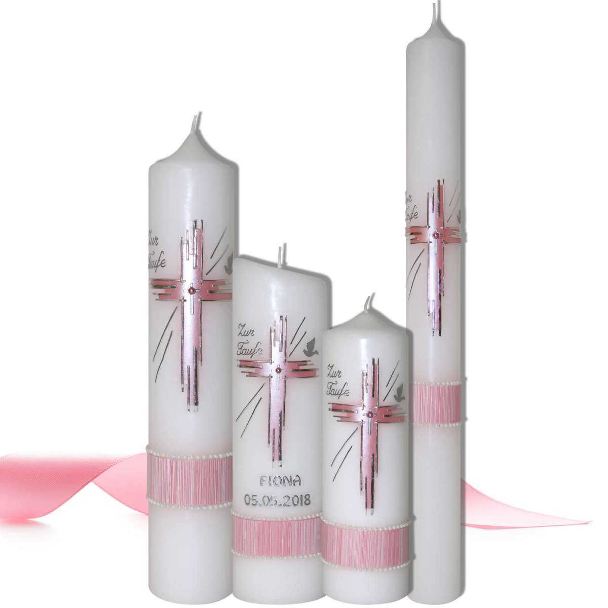 Oh, diese Taufkerze 'Annabelle' ist einfach wunderschön! In zartem Rosa mit einem dekorativen Kreuz-Motiv wird sie zu einem besonderen Erinnerungsstück an den großen Tag. Du kannst sie persönlich gestalten lassen - mit dem Namen des Täuflings, dem Taufdatum und einem individuellen Spruch. Die Kerze wird mit modernster Drucktechnologie bedruckt, sodass die Farben brilliant leuchten und lange halten. Mit 25 cm Höhe und 8 cm Durchmesser ist sie perfekt für den Tisch oder Altar. Hergestellt aus hochwertigem Paraffinwachs mit RAL- und Dekra-Zertifizierung, brennt sie gleichmäßig ab und tropft nicht. Du kannst sie auch im Set mit Patenkerzen bestellen - in verschiedenen Kombinationen von 1x Taufkerze bis hin zu 1x Taufkerze plus 4x Patenkerzen. Jede Kerze wird mit Liebe in Deutschland produziert und ist ein Symbol für Liebe und Licht. Ein wirklich besonderes Geschenk, das noch Jahre später an diesen wichtigen Moment erinnert. Die Lieferung erfolgt schnell, sodass du dich ganz auf die Vorbereitungen konzentrieren kannst. Einfach zauberhaft!
