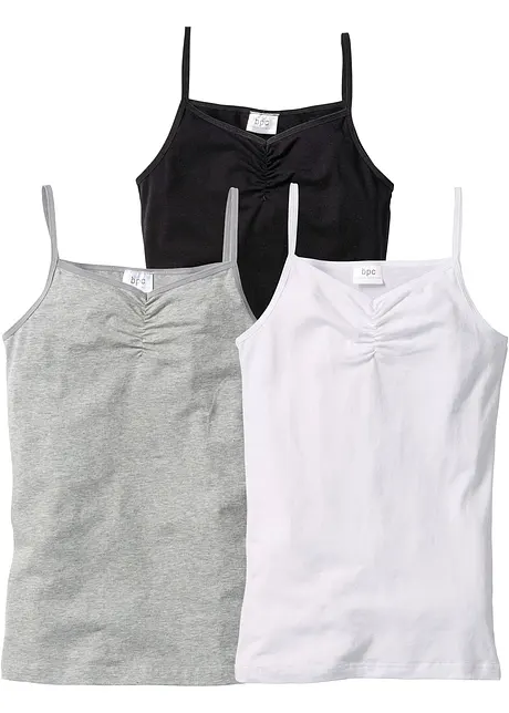 Diese süßen Spaghettiträger für Mädchen sind echte Allrounder im Kleiderschrank! Im 3er-Pack hast du immer ein frisches Top parat. Aus 100% weicher Baumwolle sind sie atmungsaktiv und hautfreundlich - perfekt für empfindliche Kinderhaut. Mit Überziehverschluss leicht an- und auszuziehen. Ob alleine im Sommer oder unter Shirts im Winter - sie passen zu allem! Ideal für Kindergarten, Schule, Sport oder Freizeit. Von Größe 110 (2-3 Jahre) bis 160 (11-12 Jahre) ist für jedes Mädchen die passende Größe dabei. Einfach in der Maschine waschbar und formstabil. Diese Basics dürfen in keinem Kinderkleiderschrank fehlen!