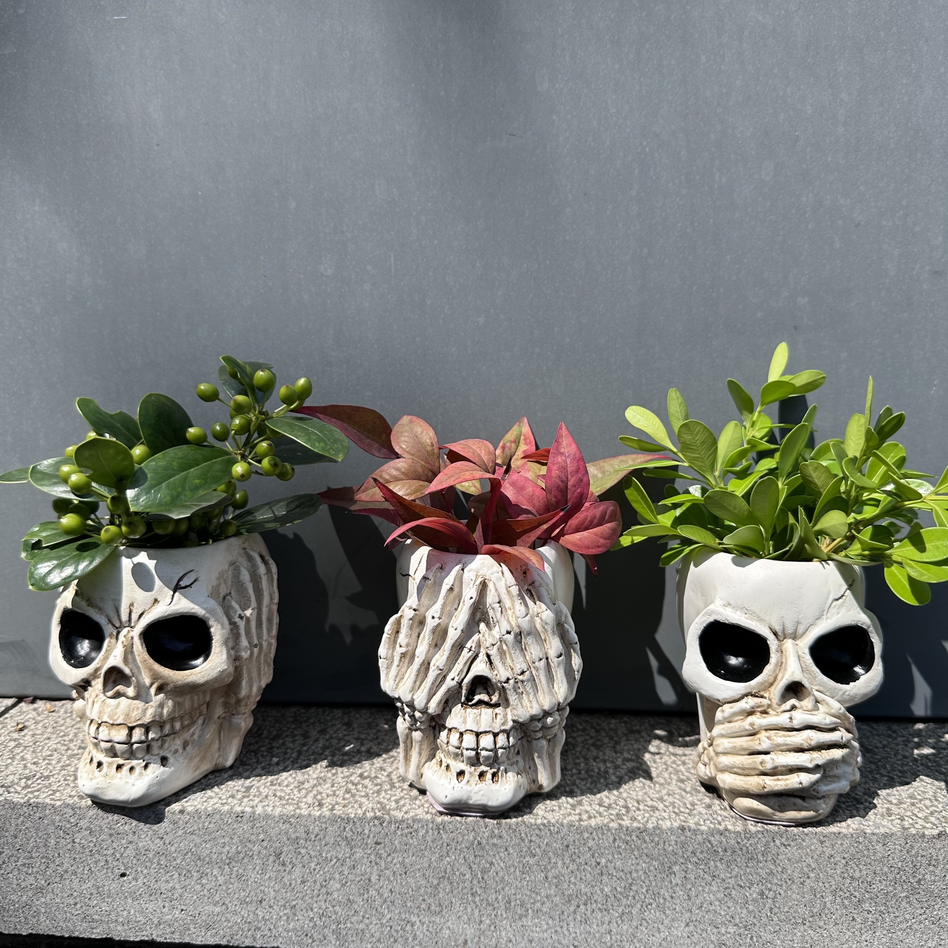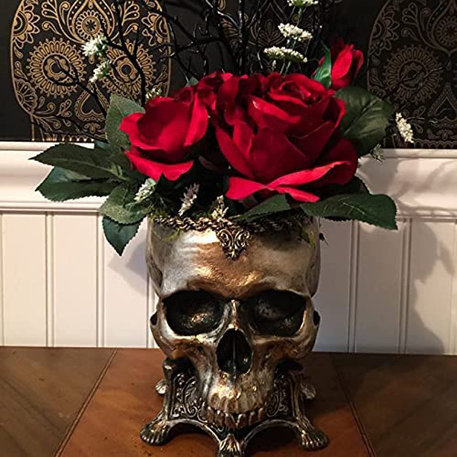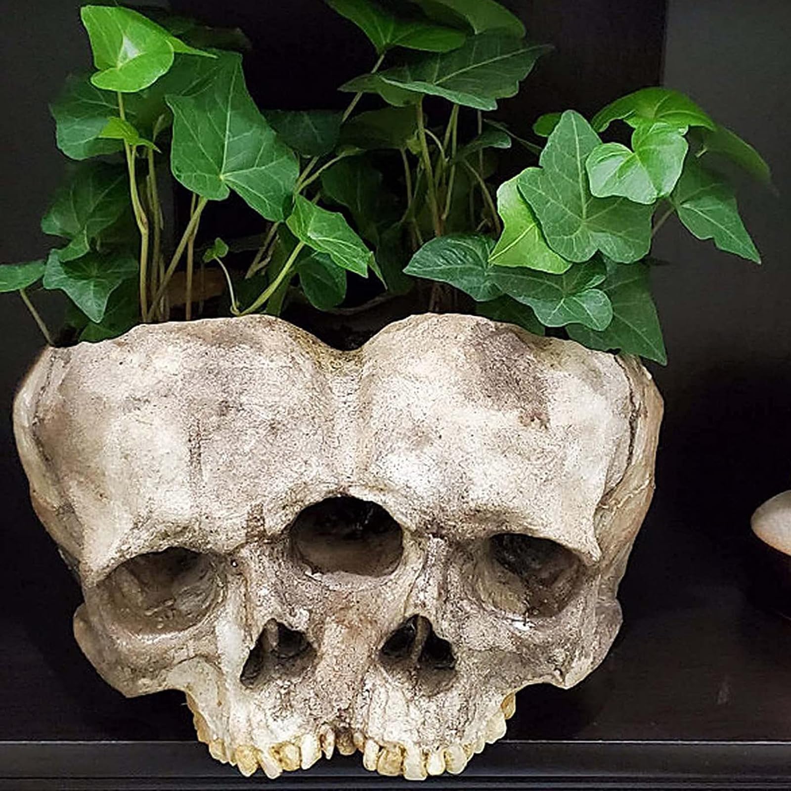 Gruselig gut! Dieser Totenkopf-Blumentopf aus Harz ist die perfekte Deko für Halloween. Mit 16,5x11,5x11cm ist er groß genug für kleine Pflanzen, Gräser oder als Süßigkeiten-Schale auf deiner Halloween-Party. Sieht super echt aus und macht jede Deko-Ecke unheimlich stylish! Aus stabilem Kunstharz gefertigt - kippt nicht um und hält lange. Ob auf der Fensterbank, im Regal oder als Tischdeko - dieser Schädel zieht alle Blicke auf sich! Perfekt für die Halloween-Saison, aber auch als coole Deko für Bar, Nachtclub oder Gothic-Einrichtung. Einfach bepflanzen oder mit Süßigkeiten füllen und die Gäste beeindrucken! Mach dein Zuhause zur Gruselburg - hol dir diesen coolen Totenkopf!