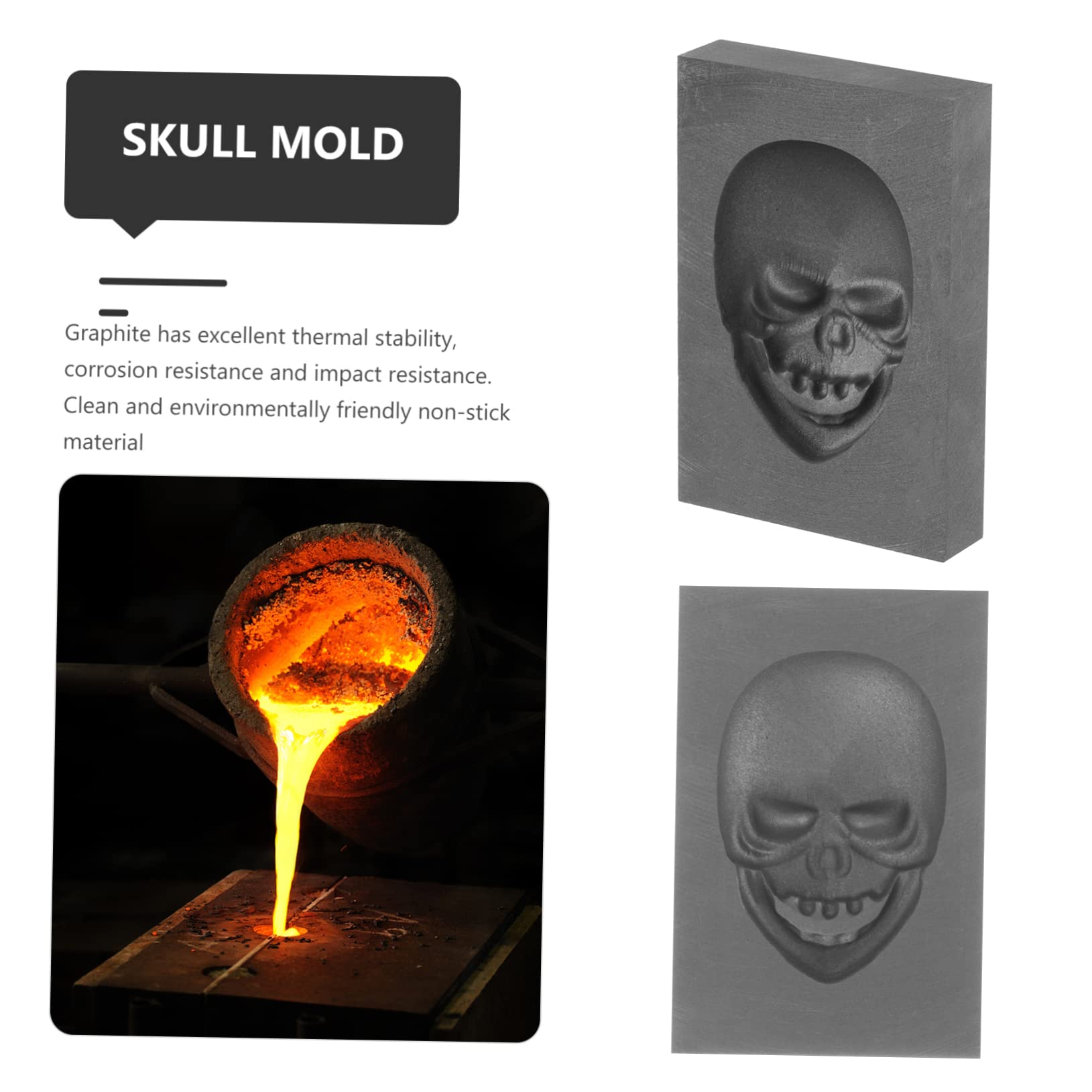 Für alle Hobby-Schmelzer und Edelmetall-Fans: Diese Graphit-Gussform in Schädelform ist einfach nur cool! Mit den Maßen 6x5x1cm ist sie perfekt für kleinere Mengen an Gold, Silber, Kupfer oder Messing. Graphit hat eine super Wärmeleitfähigkeit und ist hitzebeständig - ideal also zum Schmelzen. Die Oberfläche ist schön glatt, sodass sich die gegossenen Barren später leicht entfernen lassen. Perfekt für den Einsatz im Hobby-Bereich, für den Wissenschaftsunterricht oder kleine Labor-Projekte. Die Form ist zwar klein, aber genau das macht sie praktisch für erste Versuche oder das Gießen von kleinen Mengen. Einfach das geschmolzene Metall eingießen, abkühlen lassen und schon hast du deinen eigenen Schädel-Barren! Aus hochwertigem Graphit-Material, das nicht so schnell bricht oder sich verzieht. Ob für Schmuck-Projekte, Sammlerstücke oder einfach nur zum Ausprobieren - diese Form macht richtig Spaß!
