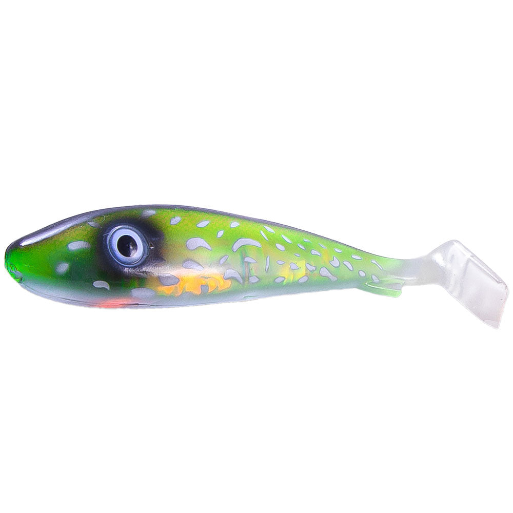 Die Black Silver Glitter Farbe funkelt verführerisch im Wasser. Das spezielle Gummimaterial ist extrem bissfest und widersteht selbst kräftigen Hechtattacken. Die steile Schwanzflosse sorgt für eine unwiderstehliche Aktion.