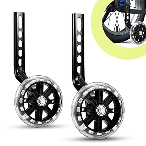Damit dein Kind sicher Radfahren lernt! Diese Stützräder aus Edelstahl und Kunststoff geben den nötigen Halt und reduzieren Stürze. Die Höhe ist verstellbar, passen also für Fahrräder von 16 bis 24 Zoll - wachsen praktisch mit. Einfach zu montieren, Werkzeug ist dabei. Mit 12,8 cm Rad-Durchmesser stabil genug für alle Untergründe. Ob für den ersten Versuch oder zum Üben - damit gewinnt dein Kind Selbstvertrauen auf dem Rad. Schwarz oder silber erhältlich. Perfekt für Mehrgangfahrräder, aber auch für normale Kinderräder geeignet. Einfach dranmachen und dein Kind kann sicher üben!