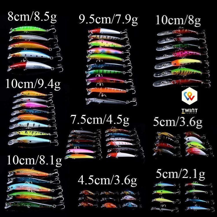 Jeder Köder misst ca. 8,5 cm - die ideale Größe für die meisten Süßwasserfische. Aus robustem ABS-Material, das auch nach häufigem Einsatz nicht nachgibt. Die leuchtenden Farben sind unter Wasser super sichtbar und ziehen die Fische magisch an.