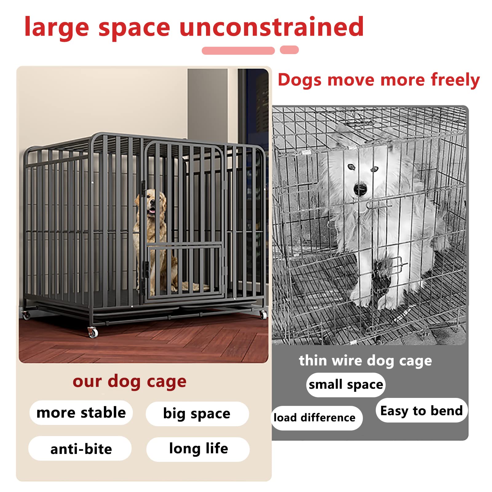 • Schwerlast-Hundekäfig Mit 2 Türen & Rädern - Transportbox Für Große Hunde Bis 70 Kg