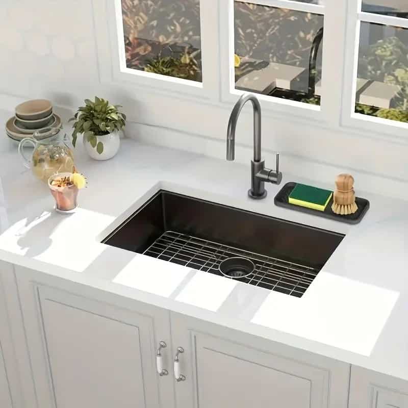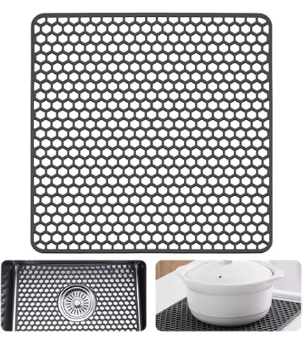 Diese Silikon-Spülbeckenmatte ist einfach genial für jede Küche! Mit 76x40cm ist sie schön groß und passt unter fast jedes Spülbecken. Das Beste: Du kannst sie einfach zuschneiden, um sie perfekt an deinen Abfluss anzupassen. Die rutschfesten Füße sorgen dafür, dass die Matte sicher liegt - aber trotzdem kann Wasser problemlos abfließen. Aus hochwertigem Silikon gefertigt ist sie hitzebeständig und super leicht zu reinigen. Einfach abspülen oder in die Spülmaschine stecken - praktisch! Die Matte schützt nicht nur dein Spülbecken vor Kratzern, sondern polstert auch dein Geschirr und Gläser beim Abwaschen. Und sie kann noch mehr: Als Abtropfgestell für frisch gewaschenes Obst oder Gemüse, oder sogar als Kühlkissen - einfach vielfältig einsetzbar! Erhältlich in Schwarz, Grau oder Weiß - da findest du sicher die passende Farbe für deine Küche. Einfach nen echter Allrounder für den Haushalt!