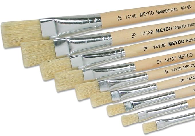 Dieser LOVEART Borstenpinsel ist ein echtes Allround-Talent für Künstler und Hobby-Maler! Mit der flachen Form und Größe 20 meisterst du sowohl Ölfarben als auch Aquarelle super easy. Der stabile Holzstiel liegt gut in der Hand, und die silberne Kappe sieht nicht nur stylisch aus, sondern schützt die Borsten auch super. Perfekt für alle möglichen Projekte - ob Decoupage, Glasmalerei, Keramikbemalung oder einfach nur zum Malen mit den Kids. Hergestellt in Polen mit Haarlänge 2,4cm und Borstenbreite 2,1cm bei einer Gesamtlänge von 22,8cm. Ein richtig hochwertiger Pinsel, der lange hält und bei jedem Kunstprojekt überzeugt. Ein Must-have für jede kreative Seele!