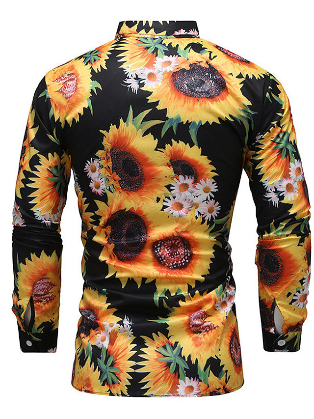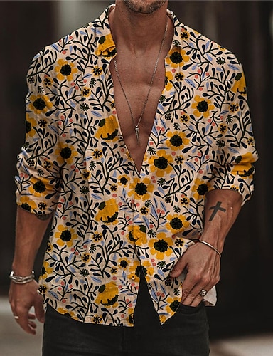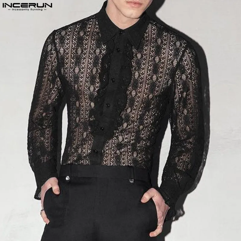 • Caxndycing Herren Spitze Mesh Hemd - Transparent Blumen Langarm