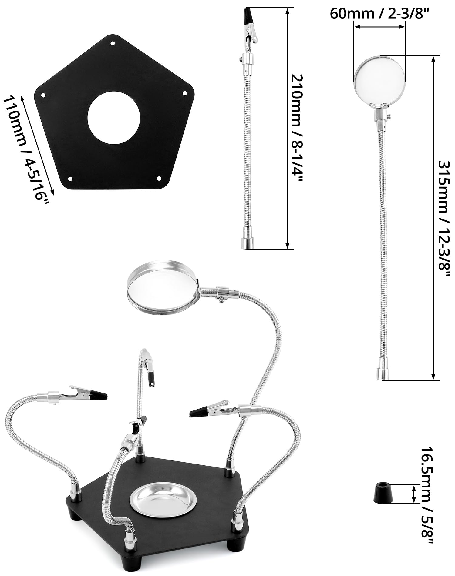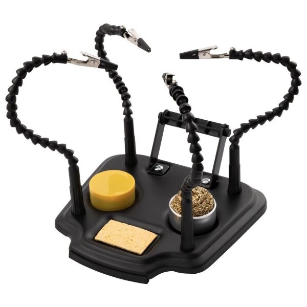 Hey, du bastelst gerne an Elektronik oder machst Schmuck? Dann ist diese QWORK Lötstation genau das Richtige für dich! Die sogenannte 'Dritte Hand' hat 4 flexible Metallarme, die jeweils 30 cm lang sind und dir alles genau da halten, wo du es brauchst. Mit dabei ist eine 3-fache Lupe, damit du auch die kleinsten Lötstellen perfekt im Blick hast. Die Krokodilklemmen sind um 360 Grad drehbar und packen deine Teile sicher fest. Der Standfuß ist schön schwer und hat Anti-Rutsch-Füße - da wackelt nichts! Super praktisch für Leiterplatten, kleine Reparaturen, Modellbau oder wenn du mal wieder Ohrringe basteln willst. Einfach die Arme in die richtige Position biegen, Teile einklemmen und loslöten! Spart dir viel Ärger und gibt dir freie Hände für die präzise Arbeit. Perfekt für Hobby-Bastler, Elektronik-Fans und alle, die gerne mit kleinen Teilen arbeiten. Einfach aufstellen und sich über die praktische Hilfe freuen! Für alle, die nicht genug Hände haben beim Basteln.