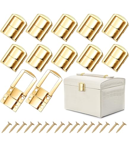 Suchst du noch die perfekten Verschlüsse für deine Boxen und Koffer? Die QUARKZMAN Hasp Schlösser im 4er Set sind genau das Richtige! In Gold mit retro Design sehen sie nicht nur super stylisch aus, sondern sind auch richtig praktisch. Mit den Maßen 29 x 27 mm passen sie perfekt auf die meisten Schmuckkästchen, Werkzeugkästen, Holzkisten oder Reisekoffer. Aus robustem Eisen gefertigt und galvanisiert veredelt, halten die Schlösser richtig was aus - keine Sorge vor Verformungen oder Abnutzung. Die Installation ist kinderleicht: Einfach die mitgelieferten Schrauben durch die 2 mm Montagelöcher drehen und schon sind die Verschlüsse fest angebracht. Das Schnallendesign ist nicht nur dekorativ, sondern sorgt auch für einen sicheren Halt. So fallen deine wertvollen Gegenstände nicht mehr heraus, und die Boxen sehen dabei noch richtig edel aus. Egal ob du dein Schmuckkästchen verschönern willst oder deinen Werkzeugkoffer sicher verschließen möchtest - diese Retro-Verschlüsse machen überall eine gute Figur. Das 4er Set reicht für mehrere Boxen, oder du hast gleich Ersatz parat. Einfach klasse für alle DIY-Fans und die, die ihren Boxen einen individuellen Look verpassen wollen!