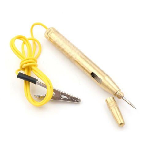 Hey Schrauber! Dieser Spannungsprüfer ist ein echter Game-Changer für alle Auto-Arbeiten. Testet Stromkreise von 6V bis 24V DC - perfekt für Auto, LKW, Boote und Motorräder.\\n\\nDie scharfe Stahlnadel durchdringt easy die Kabelisolierung, ohne sie zu beschädigen. So kannst du genau prüfen, wo Strom fließt und wo nicht. Der ABS-Griff liegt gut in der Hand und ist sicher isoliert.\\n\\nDie 3-Watt-Birne leuchtet sofort auf, wenn Strom fließt - und die ist sogar austauschbar! Das 1 Meter lange Kabel ist dick genug, dass es nicht durchbrennt.\\n\\nPerfekt für Sicherungen, Schalter, Kabel - alles, was in deinem Fahrzeug Strom führt. Einfach Masse anklemmen und mit der Nadel prüfen. Siehst du sofort, ob Strom da ist oder nicht. Unverzichtbar für jede Werkstatt!
