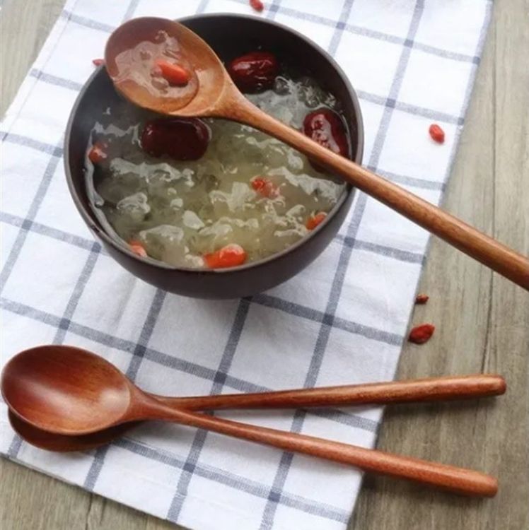Perfekte Holzlöffel für deine Küche! Dieses 5er-Set mit je 23cm Länge ist ideal fürs tägliche Kochen, Rühren und Servieren. Aus natürlichem Holz gefertigt, fühlen sich die Löffel super angenehm in der Hand an und schonen deine Töpfe und Pfannen. Der lange Griff bleibt auch bei heißen Speisen kühl - kein Verbrennen mehr an den Fingern! Die glatte Oberfläche verhindert, dass Lebensmittel ankleben, und macht die Reinigung zum Kinderspiel. Egal ob du Suppen umrührst, Desserts anrichtest oder asiatische Gerichte zubereitest - diese Löffel sind deine perfekten Begleiter. Die natürliche Holzmaserung verleiht deiner Küche einen stylischen, rustikalen Touch. Super praktisch: Mit 5 Löffeln im Set hast du immer einen griffbereit, auch wenn mal welche in der Spülmaschine sind. Hergestellt aus langlebigem Holz, das bei guter Pflege jahrelang hält. Einfach ab und zu mit etwas Öl einreiben, und die Löffel bleiben schön und hygienisch. Ein Must-Have für jede Küche - ob für Profiköche oder Hobbyköche!
