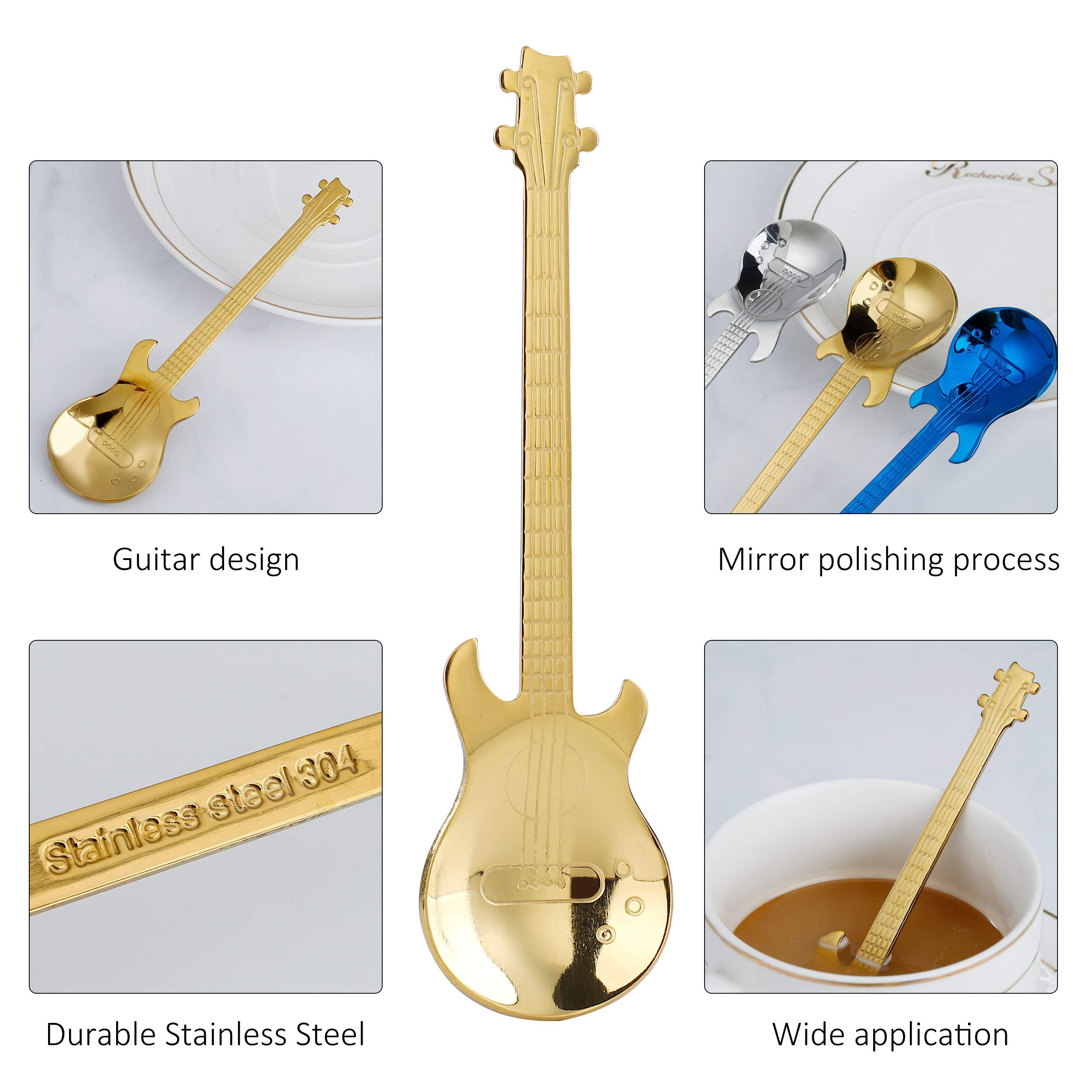 Dieses niedliche 7er Löffel-Set in Gitarrenform bringt Farbe in deine Küche! Jeder Löffel 12cm lang aus lebensmittelechtem 304 Edelstahl - rostfrei, korrosionsbeständig und superhygienisch! In 7 knalligen Farben: Silber, Gold, Roségold, Schwarz, Fantasy, Lila und Blau. Hochglanzpoliert ohne scharfe Kanten - verletzt weder Hände noch Mund. Spülmaschinengeeignet - einfach reinigen und fertig! Perfekt für Kaffee, Tee, Desserts, Eiscreme oder zum Mixen von Getränken. Sieht nicht nur super aus, sondern ist auch mega praktisch! Ideal für Zuhause, Café, Restaurant oder Bar - ein echter Hingucker auf jedem Tisch! Mach deine Kaffeepause noch bunter - mit diesen coolen Gitarren-Löffeln!