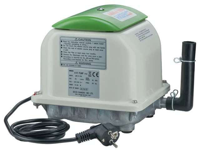 Sauerstoff für deinen Gartenteich! Dieses FIAP AIR Active Set bringt Leben in deinen Teich. Mit 216 l/h Luftleistung ist es perfekt für Teiche bis 6000 Liter. Die hochwertige EPDM-Membrane ist langlebig und energieeffizient. Im Sommer sorgt sie für lebensnotwendigen Sauerstoff, im Winter hält sie eine Stelle eisfrei und lässt Faulgase entweichen. Das 5 Meter lange Kabel gibt dir genug Spielraum für die Platzierung. Einfach aufstellen, anschließen und deine Fische und Pflanzen werden es dir danken. Die biologische Aktivierung des Teichwassers beugt Algenwachstum vor und hält das Wasser klar. Robustes Gerät für den ganzjährigen Einsatz im Freien. Mach deinen Teich zu einem gesunden Lebensraum!