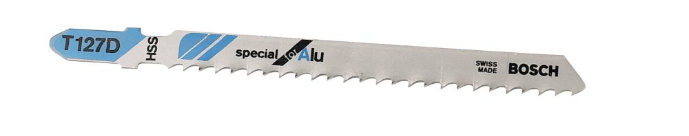 Metallarbeiter, hier ist euer neuer bester Freund! Die Bosch PRO T127D Stichsägeblätter sind speziell für Aluminium und Nichteisenmetalle entwickelt. Mit 100mm Länge und aus robustem Schnellarbeitsstahl (HSS) schneiden sie sich perfekt durch Aluminiumbleche von 3-15mm Dicke. Auch Rohre und Profile bis 25mm Durchmesser sind kein Problem. Die gefrästen, geschränkten Zähne und ovalen Spanräume sorgen für saubere, gleichmäßige Schnitte. Extrem langlebig und hitzebeständig - genau was du für professionelle Metallarbeiten brauchst. Passend für alle T-Schaft-Stichsägen, also praktisch universell einsetzbar. Im 2er Pack hast du immer Ersatz parat. Ob in der Werkstatt oder auf der Baustelle - mit diesen Blättern machst du schnelle, präzise Schnitte in Aluminium. Bosch Professional Qualität, auf die du dich verlassen kannst. Einfach einsetzen und von der Performance überzeugt sein!