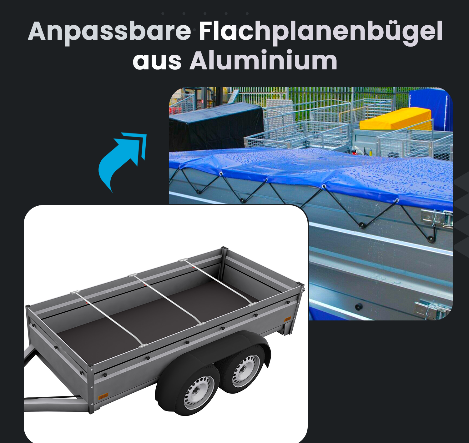 Schluss mit durchhängenden Planen! Dieser praktische Flachplanenbügel von The Drive sorgt für stabile, straffe Planen auf deinem Anhänger. Aus robustem Aluminium gefertigt, leicht aber extrem stabil. Verstellbar von ca. 108 bis 146cm - passt sich flexibel verschiedenen Anhängergrößen an. Das U-Profil mit Innenmaßen von 85x35mm gibt optimalen Halt und verhindert ein Verrutschen. Einfach anbringen und schon sackt die Plane nicht mehr ein bei Regen oder Schnee. Perfekt für Transporte, Baustellen oder landwirtschaftliche Einsätze. Leicht zu montieren, keine Spezialwerkzeuge nötig. Schützt deine Plane vor übermäßigem Verschleiß und verlängert ihre Lebensdauer. Ob für gewerbliche Nutzung oder private Transporte - dieser Bügel ist ein echter Game-Changer! Einfach bestellen, anbringen und sich über perfekt gespannte Planen freuen - mehr Stabilität geht nicht! Deine Ladung bleibt trocken und sicher - und dein Anhänger sieht immer top gepflegt aus.