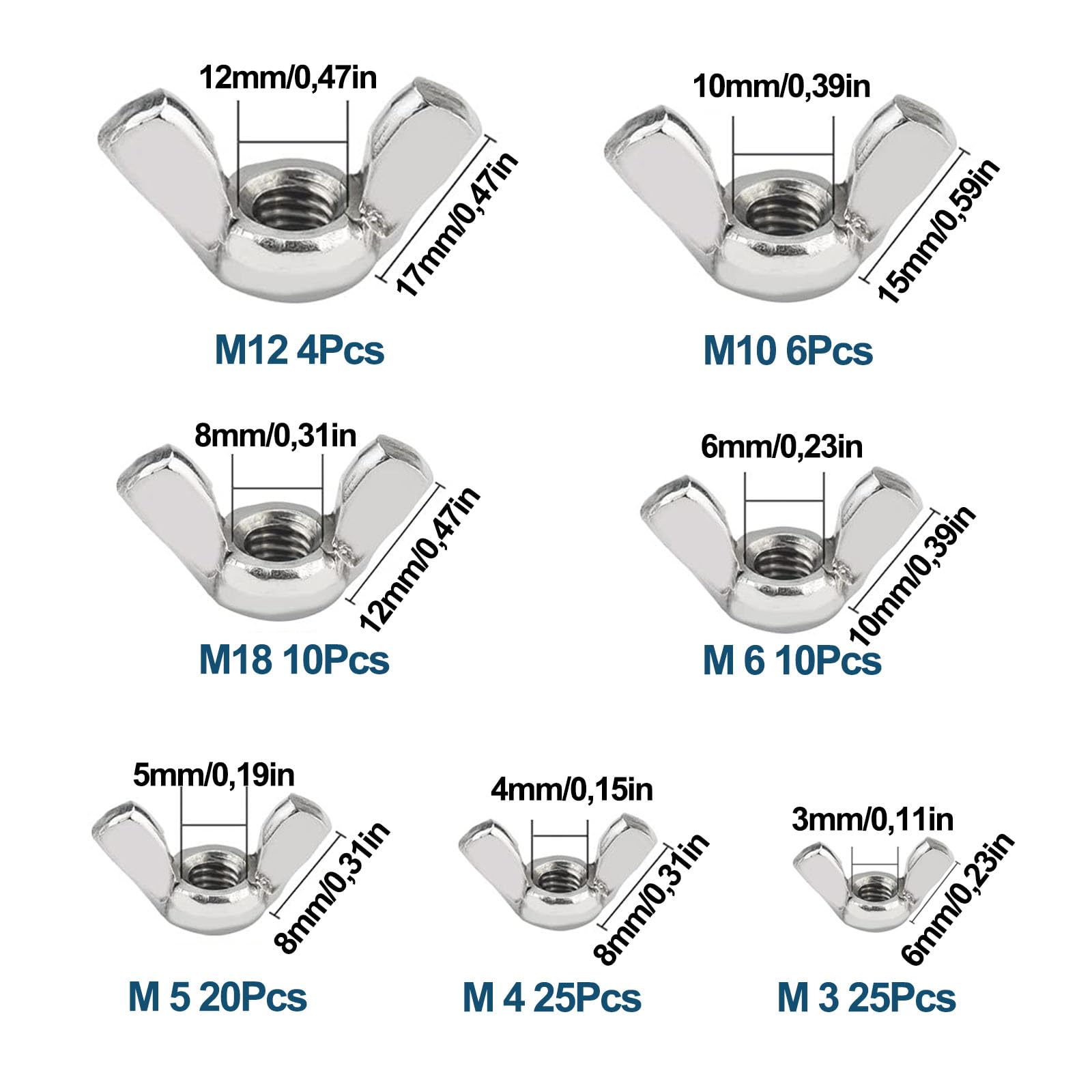 Praktisches Flügelmuttern-Set für alle Fälle! 52 Teile aus rostfreiem Edelstahl - super korrosionsbeständig und langlebig. Das clevere Flügel-Design ermöglicht das Festziehen und Lösen OHNE Werkzeug - einfach mit der Hand drehen! Enthält verschiedene Größen für unterschiedliche Anwendungen. Mit praktischer Aufbewahrungsbox - alles ordentlich sortiert und griffbereit. Perfekt für Möbelmontage, Elektrogeräte, Auto-Reparaturen und mechanische Projekte. Ein unverzichtbares Werkzeug für Heimwerker und Profis. Immer die richtige Mutter parat! Einfach aus der Box nehmen und losschrauben - so praktisch war reparieren noch nie!