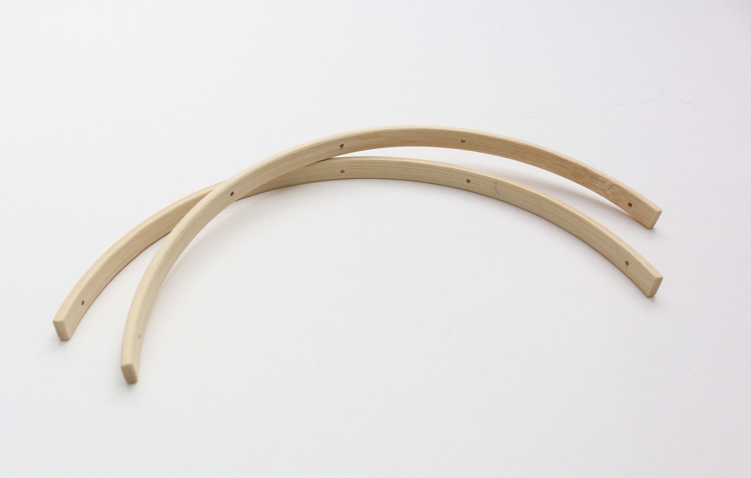 Diese süßen Holzbögen sind perfekt für selbstgemachte Baby-Mobiles! Im Set sind 2 Bögen in naturbelassenem Holz, each ca. 30cm groß. Die natürliche Farbe passt zu jedem Kinderzimmer-Stil. Besonders praktisch: Jeder Bogen hat 5 vorgebohrte Löcher, durch die du einfach Fäden oder Bänder ziehen kannst um Spielzeuge, Figuren oder Glöckchen aufzuhängen. So bastelst du im Handumdrehen ein persönliches Mobile für dein Baby. Ohne scharfe Kanten und aus nachhaltigem Holz - sicher und umweltfreundlich. Ob über dem Wickeltisch, dem Bettchen oder dem Spielbereich - dein Baby wird fasziniert sein von der Bewegung und den Formen!