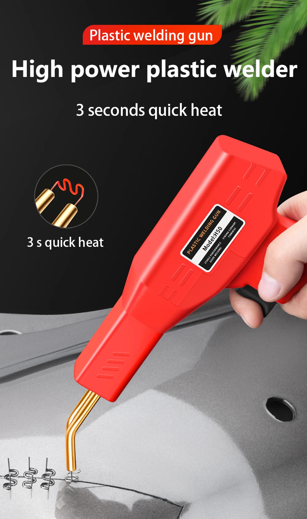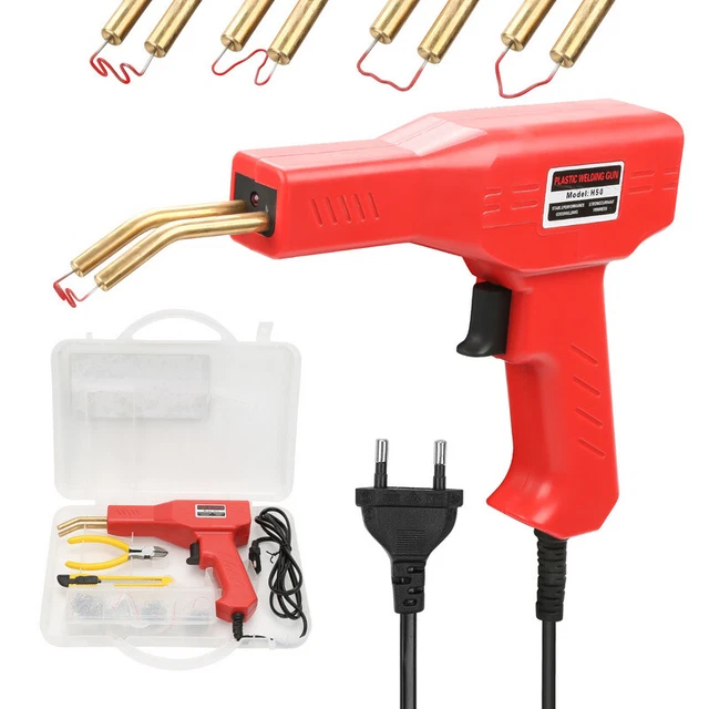 Riss in der Stoßstange? Kein Problem mit diesem praktischen Kunststoff-Schweißgerät! Kabellos und mit Akku, also super flexibel überall einsetzbar. Heizt sich blitzschnell auf bis zu 932°C auf - repariert Risse in Kunststoffteilen im Handumdrehen. Mit 4 verschiedenen Schweißnägeln für unterschiedliche Materialstärken. Digitale Anzeige zeigt Akkustand und Schweißvorgänge an. Perfekt für Auto-Stoßstangen, Motorradverkleidungen, Kinderspielzeug oder Gartenmöbel. Einfach zu bedienen, mit Sicherheitsschalter gegen versehentliches Einschalten. Deine Werkstatt to go!