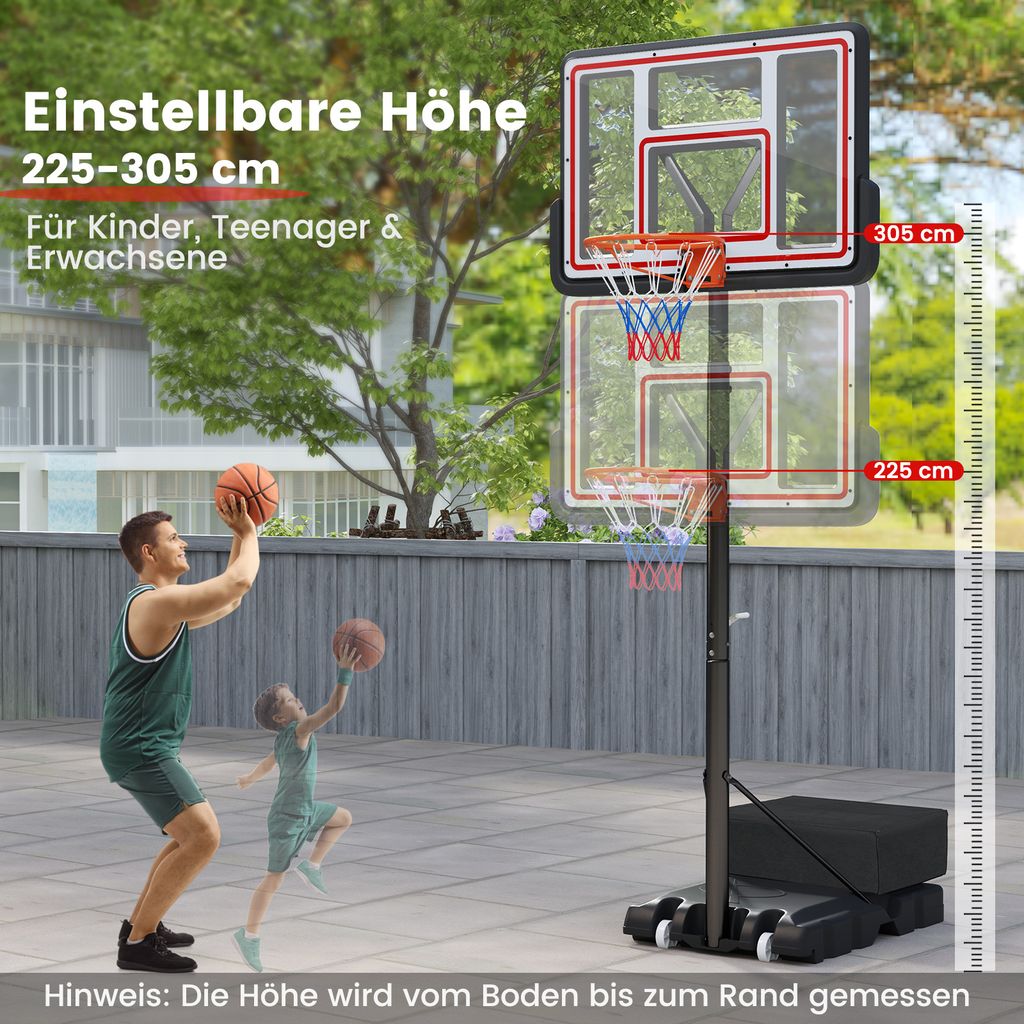 Endlich professionelles Basketball-Feeling im eigenen Garten! Der Hudora Hornet XXL ist nicht irgendein Basketballkorb - er ist der Größte in seiner Klasse und bringt NBA-Feeling in deinen Garten. Was ihn so besonders macht? Er ist höhenverstellbar von 260 bis 305 cm und kann damit auf die offizielle Spielhöhe gebracht werden. So können nicht nur Kinder, sondern auch Erwachsene richtig abziehen! Die zwei praktischen Rollen machen ihn super mobil - einfach umstellen, wo immer du spielen willst. Der stabile Standfuß wird mit Wasser oder Sand befüllt (ca. 28,7 Liter) und gibt bombenfesten Halt. Auch bei heftigen Dunkings wackelt hier nichts! Das Mega-Basketballbrett aus PP ist 110 x 75 cm groß und der Metallring hat stolze 45 cm Durchmesser. Das dreifarbige Polyesternetz ist 53 cm lang und sieht einfach klasse aus. Die Vertikalstange ist pulverbeschichtet und damit absolut wetterfest - du kannst den Korb also das ganze Jahr über draußen stehen lassen. Perfekt für alle, die nicht nur rumstehen, sondern richtig spielen wollen! Ob alleine, mit Freunden oder der ganzen Familie - mit diesem Basketballkorb wird jeder Nachmittag zum Sportevent.