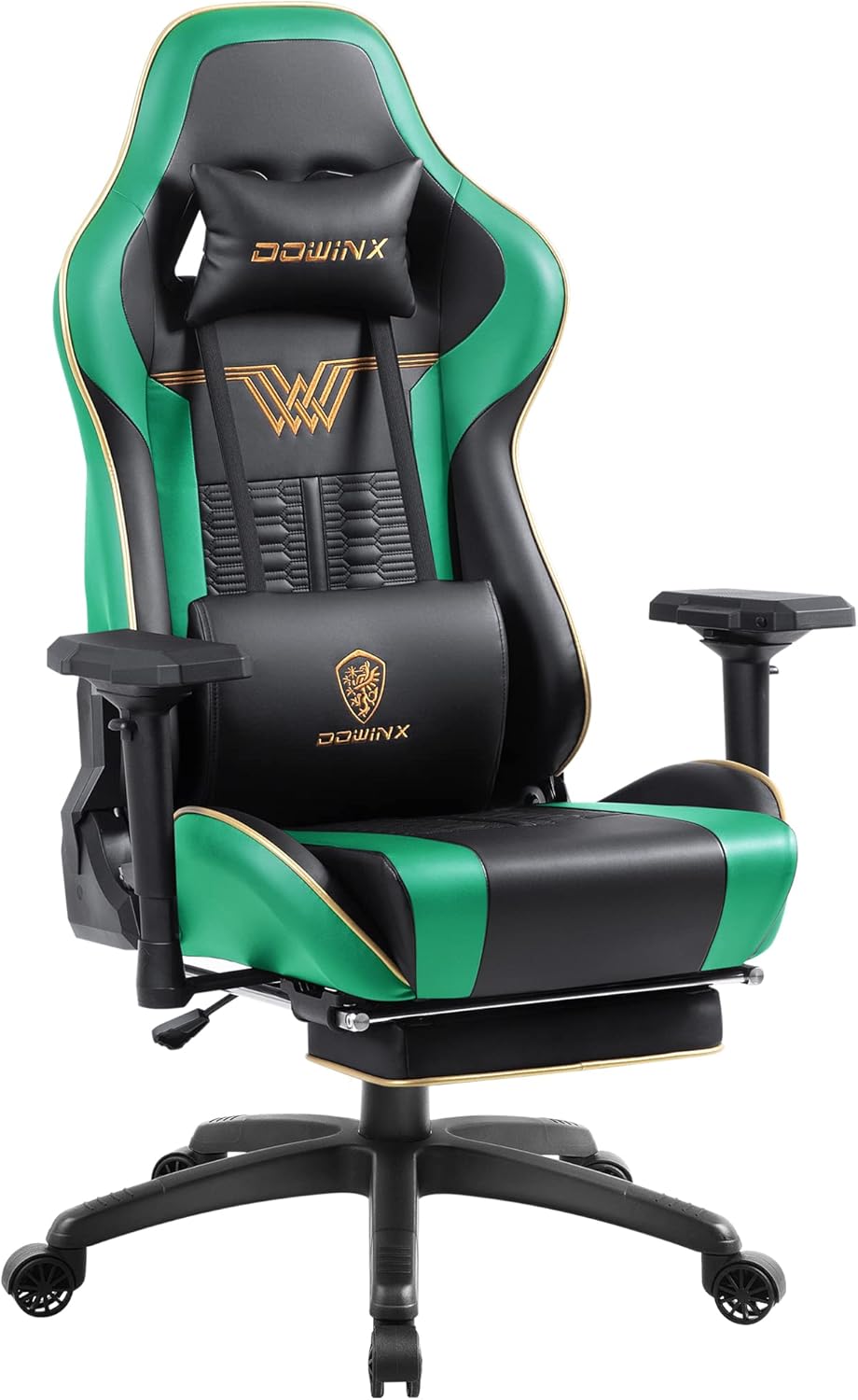 Gaming und Arbeiten in Perfektion! Der Dowinx Gaming Stuhl kombiniert Luxus mit modernster Ergonomie. Das französische PU-Leder mit Boutis-Steppung sieht nicht nur edel aus, sondern ist auch super atmungsaktiv dank der Belüftungslöcher. Die integrierte USB-Massage-Lendenstütze verwöhnt deinen Rücken, während die einziehbare Fußstütze und 170° verstellbare Rückenlehne für maximale Entspannung sorgen. Stufenlos höhenverstellbar von 71-120cm und mit Memory-Funktion für deine Lieblingspositionen. Der stabile Stahlrahmen trägt bis zu 200kg - absolute Sicherheit also. Egal ob du zockst, arbeitest oder einfach nur entspannst - dieser Stuhl passt sich perfekt an deine Bedürfnisse an. Mit 30 Tage Rückgaberecht und gutem Kundenservice kaufst du absolut sorgenfrei. Ein Thron, der seinesgleichen sucht!