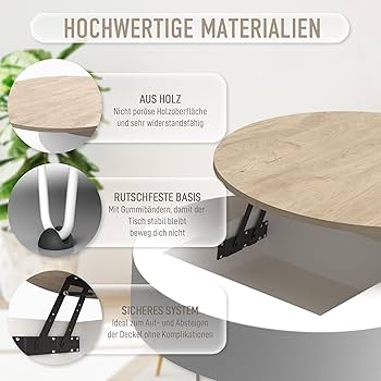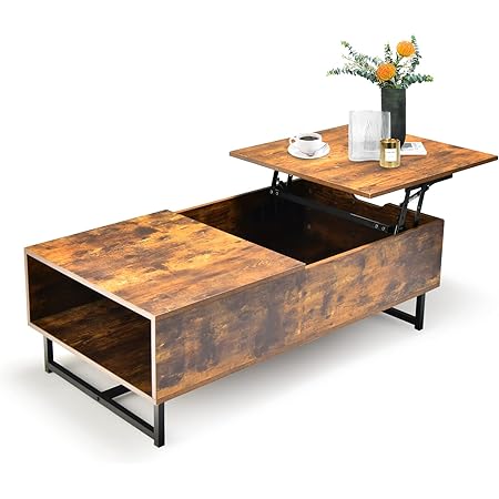 Wow, dieser Couchtisch von IBUYKE ist echt praktisch! Mit seiner höhenverstellbaren Platte kannst du ihn ganz einfach an deine Bedürfnisse anpassen. Perfekt, wenn du mal gemütlich auf dem Sofa sitzt und am Laptop arbeiten oder einfach nur entspannt essen möchtest. Das coole Retro-Design in vintage braun passt super in jedes Wohnzimmer oder Büro. Und das Beste: Unter der Klappplatte versteckt sich ein riesiges Fach, wo du all deine Sachen ordentlich verstauen kannst - keine herumliegenden Zeitschriften oder Gamecontroller mehr! Maße: 100,5x40,5x50cm, Material: stabiles MDF mit Metallmechanismus. Der Tisch wiegt 20kg und steht bombenfest. Die seitliche Schublade hat sogar ein herausnehmbares Regal - mega clever! Der Hebemechanismus lätt super smooth und quietscht nicht. Aufbau ist auch kein Hexenwerk, mit der bebilderten Anleitung kriegst du das hin. So ein praktischer Multifunktionstisch, der dein Wohnzimmer aufwertet und total viel Stauraum bietet - was will man mehr?