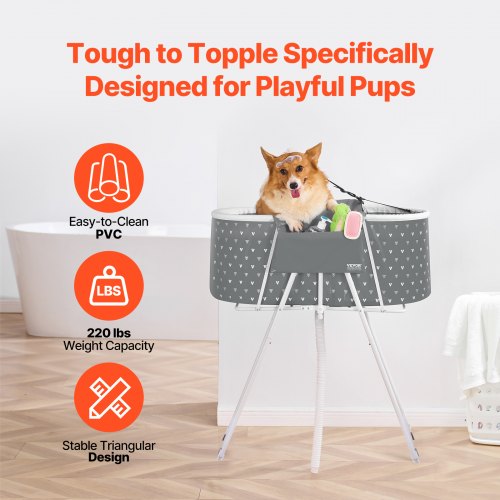 2-in-1 Hundebadewanne Faltbar Mit Höhenverstellung - Mobile Haustierwaschstation Für Kleine Hunde & Katzen In Grau