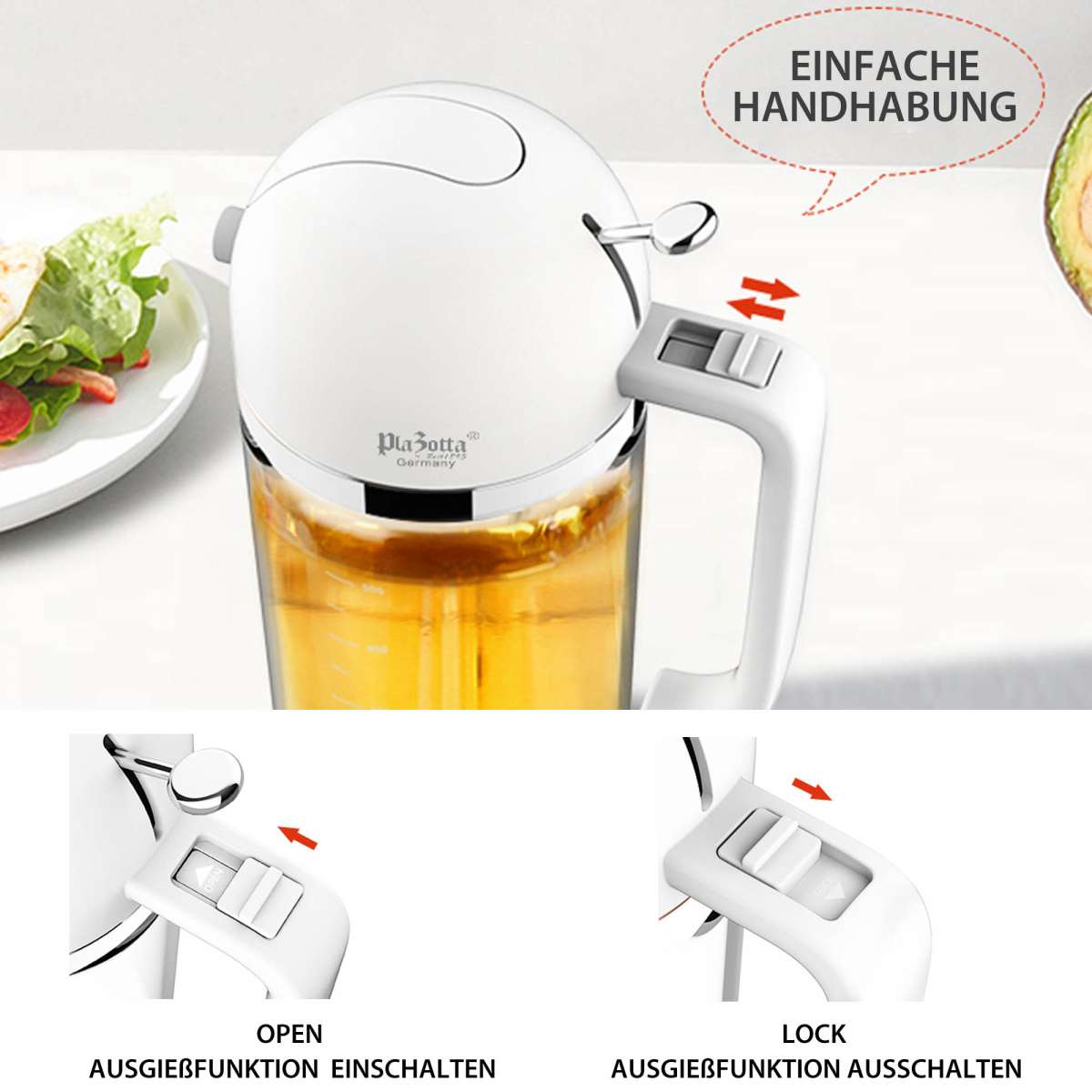 Gesünder kochen war noch nie so einfach! Dieser elegante Ölsprüher aus BPA-freiem Glas ist dein perfekter Helfer in der Küche. Mit 200ml Fassungsvermögen und feinem Zerstäuber verteilt er Öl gleichmäßig und sparsam auf dein Essen - ideal für die Heißluftfritteuse, Salate oder zum Einölen von Backformen. Die tropffreie Düse macht keine Sauerei und der abnehmbare Kopf ist spülmaschinenfest. Durch das transparente Glas siehst du immer, wie viel noch drin ist. Aus hochwertigem Material und damit langlebig und geruchsneutral. Ein muss für jede moderne Küche!