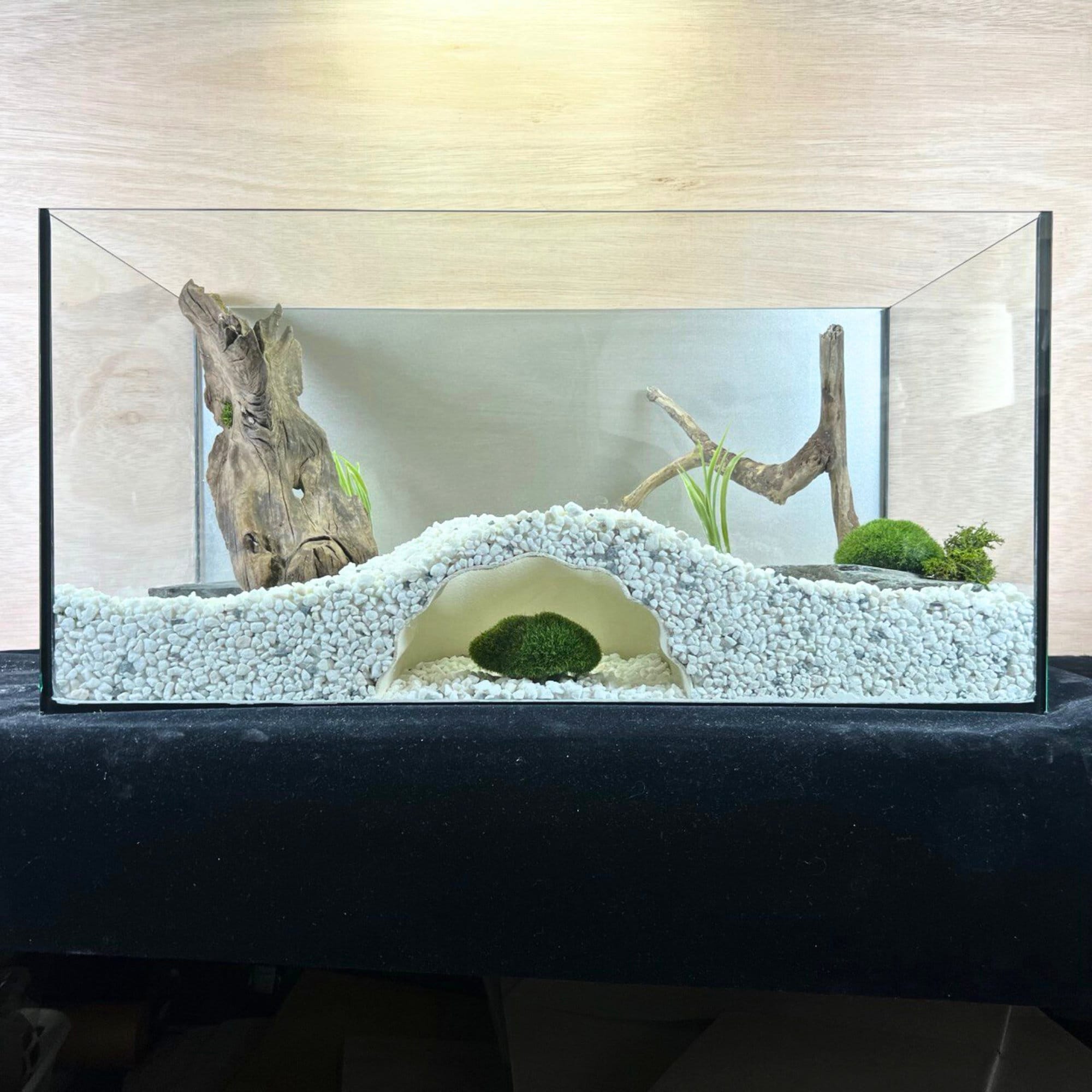 Willst du deinen Fischen etwas Gutes tun? Diese coole Aquarium-Höhle aus stabilem ABS-Kunststoff bietet deinen Wasserbewohnern den perfekten Rückzugsort! Besonders praktisch: Die spezielle Kuppelform mit Dreiecksloch und unterirdischer Terrasse gibt Fischen wie Buntbarschen, Krebsen oder Schmerlen ein sicheres Versteck. Maße: 25x4,5x4,3 cm (groß) - passt in die meisten Aquarien. Die glatten Öffnungen sorgen dafür, dass deine Fische stressfrei ein- und ausschwimmen können. Einfach ins Substrat eingraben oder an der Scheibe befestigen - schon haben deine tierischen Mitbewohner ihr neues Lieblingsversteck! Perfekt für Süß- und Meerwasseraquarien. Mach dein Aquarium zu einem echten Erlebnis und beobachte, wie deine Fische durch den Tunnel schwimmen. So macht Aquaristik noch mehr Spaß!