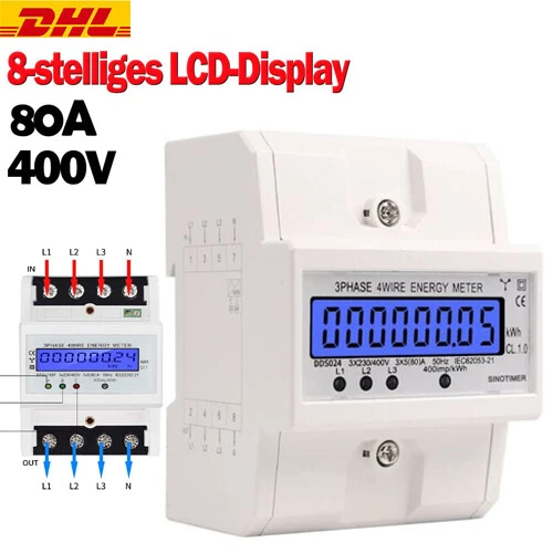 Behalte deinen Stromverbrauch im Blick! Dieser digitale Drehstromzähler von L-home misst präzise deinen Energieverbrauch. Für 3-Phasen-4-Leiter-Netze mit 3x230/400V und bis zu 100A Belastung. Mit großem LCD-Display das auch bei schlechtem Licht gut ablesbar ist. MID-geeicht für offizielle Abrechnungen gegenüber Dritten. Einfache Montage auf der DIN-Hutschiene (35mm) - passt in jede Verteilerdose. Mit S0-Schnittstelle (1000 Imp/kWh) für erweiterte Anwendungen. Zeigt momentane Last in Watt an und hat Tageszählfunktion. Ideal für Wohnmobile, Garagen, Werkstätten, PV-Anlagen oder zur allgemeinen Verbrauchsmessung. Kompakt, leicht und einfach zu installieren. Professionelle Messtechnik für Heimwerker und Elektriker!