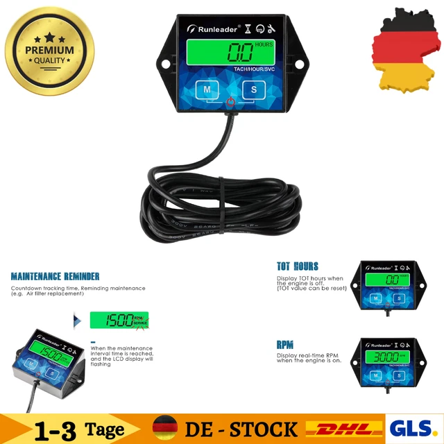 Boah, dieses Runleader Multifunktions-Messgerät ist der absolute Alleskönner! Zeigt dir Betriebsstunden, Drehzahl UND Batteriespannung gleichzeitig an - alles auf einem Display! Super für Rasenmäher, Generatoren, Außenborder, Pumpen - einfach alles mit Benzinmotor. Mit IP68 Zertifizierung komplett wasserdicht - da kann auch mal ein Regenschauer kommen. Misst von 8V bis 65V DC - perfekt für 12V und 24V Systeme. Die weiße Hintergrundbeleuchtung hilft nachts, die rote warnt bei Problemen. 9 verschiedene Zündmuster einstellbar - passt für 2-Takt und 4-Takt Motoren bis 16 Zylinder! Stell dir vor: Du siehst genau, wann dein Motor Service braucht, wann die Drehzahl zu hoch ist, ob die Batterie schlapp macht - alles in Echtzeit! Einfache Installation - kein Technik-Genie nötig. Runleader steht seit 10 Jahren für Qualität - die Profis vertrauen drauf. Ob für deine Werkstatt, dein Boot oder deine Gartenmaschinen - mit diesem Teil hast du immer alles im Blick!