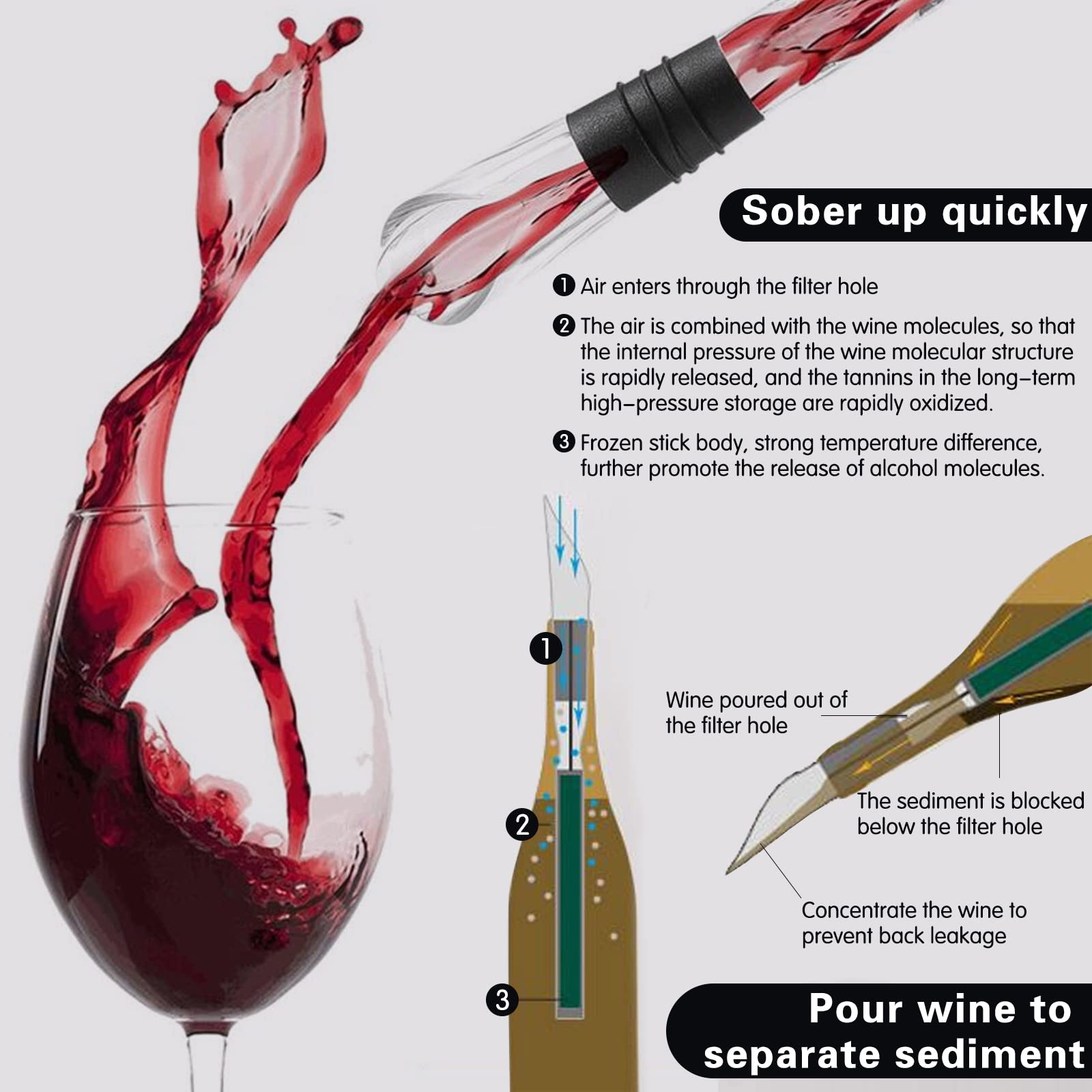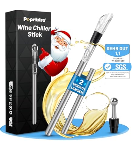Wein nicht kalt genug? Der Zocipro Weinkühler Stab löst das Problem! Dieses 4-in-1 Set aus Edelstahl ist echt praktisch: Weinkühlstab, Flaschenöffner, Weinstopfen und Folienschneider - alles dabei! Einfach den Kühlstab für etwa 1 Stunde ins Gefrierfach legen, dann in die Weinflasche stecken. Schon nach wenigen Minuten ist dein Wein perfekt gekühlt - und bleibt es bis zu 2 Stunden! Der doppellippige Ausgießer belüftet den Wein beim Einschenken und verhindert Tropfen. Alles aus hochwertigem 304 Edelstahl - rostfrei und spülmaschinengeeignet. Perfekt für Weißwein, Rosé oder Sekt. Und wenn die Flasche leer ist? Mit dem integrierten Flaschenöffner machst du die nächste auf! Das stylische Design macht sich super in jeder Küche oder Bar. Ein ideales Geschenk für Weinliebhaber - ob für Freunde, Familie oder dich selbst. Endlich keinen warmen Wein mehr trinken müssen!