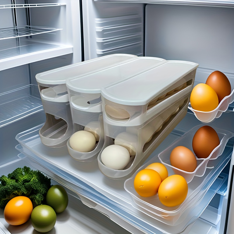 • 2 Stück Eierhalter Kühlschrank Organizer - 4-Ebenen Für 60 Eier Mit Rollsystem