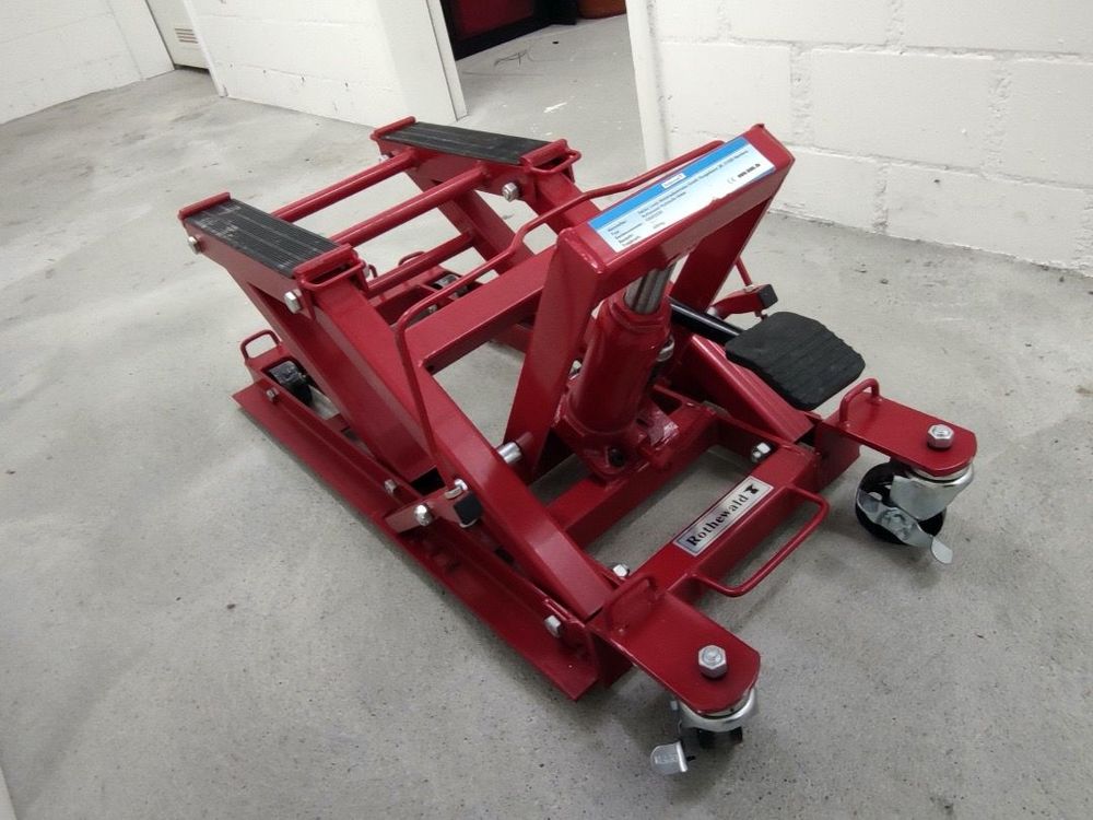 Dein Motorrad sicher und einfach anheben - mit dieser praktischen Hebebühne! Tragkraft: stolze 400 kg - auch für schwere Enduros und Motocross-Maschinen geeignet. Höhenverstellung von 25 cm auf 40 cm - perfekte Arbeitshöhe für Wartung und Reparaturen. Mit Sicherheitsverriegelung - verhindert ungewolltes Absenken. Robuste Stahlkonstruktion in schwarz/rot, H-Basis 30x31 cm für stabilen Stand. Die Gummiauflage schützt dein Motorrad vor Kratzern. Plattengröße: 28x17 cm - ausreichend Platz für den Motorradstandfuß. Einfache Handhabung: mit hydraulischem System und 10 cm langem Hebel. Ideal für Garage, Werkstatt oder Rennstrecke. Perfekt für Reifenwechsel, Kettenwartung oder Bremsarbeiten. Nettogewicht: 6,1 kg - noch tragbar aber stabil. Einfach zusammenzubauen - Anleitung liegt bei. Endlich komfortabel an deiner Maschine arbeiten, ohne dich bücken zu müssen! Ein Muss für jeden Motorrad-Fan!